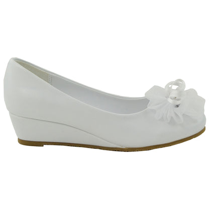 Add this ultra cute Mary Jane inspired wedge to her shoe collection. The cute bow with rhinestone detailing adds the perfect girly touch to this fabulous shoe.