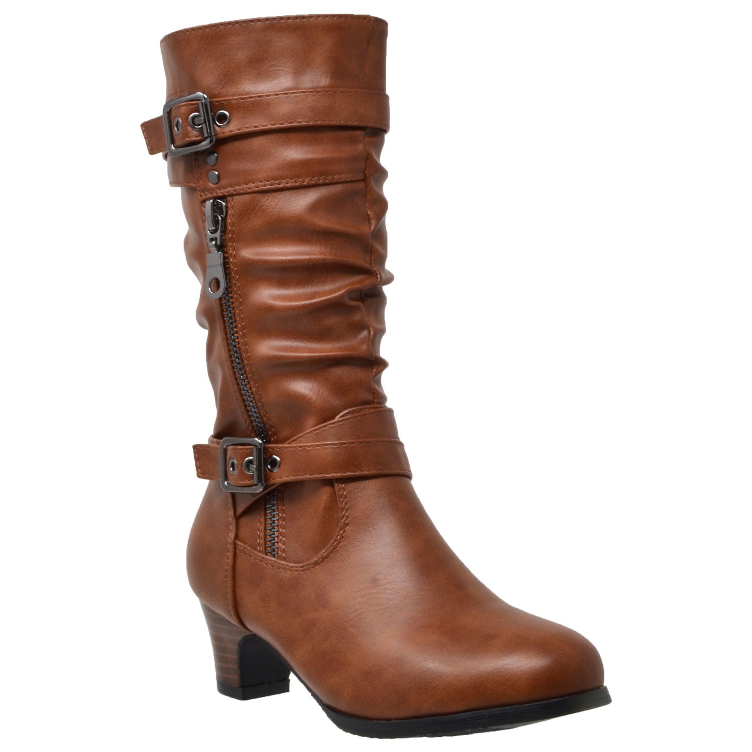 Toddler & Youth Zipper Trim Heeled Mid Calf Boot