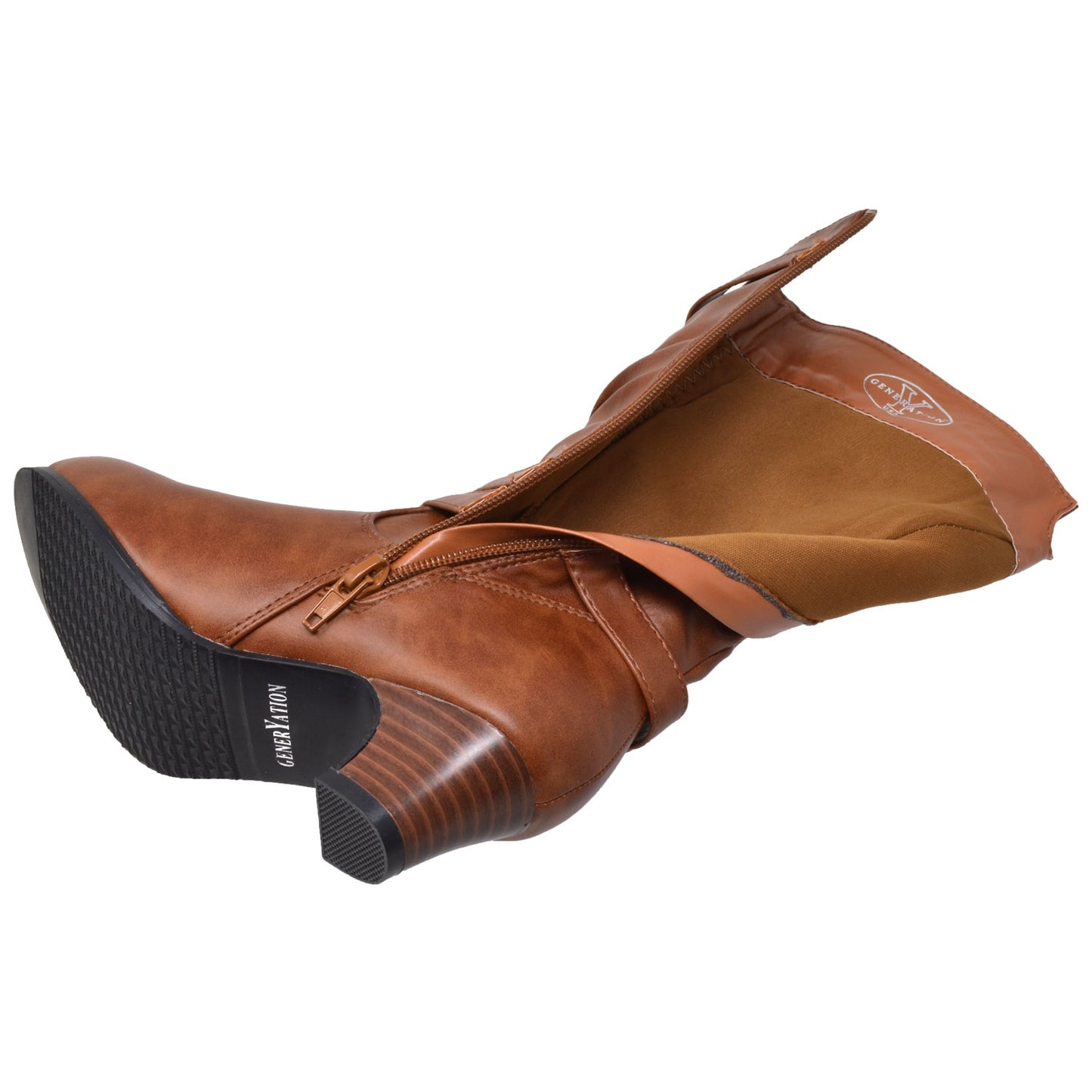 Get ready to make a statement with this tall boot that features metal hardware accents combined with buckle straps at the ankle and shaft. A low chunky heel adds the right amount of lift to your height while the full length zipper closure allows for a secure fit.