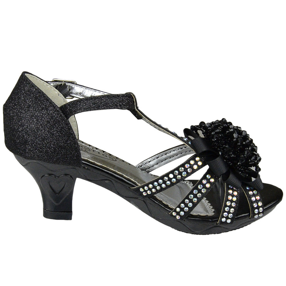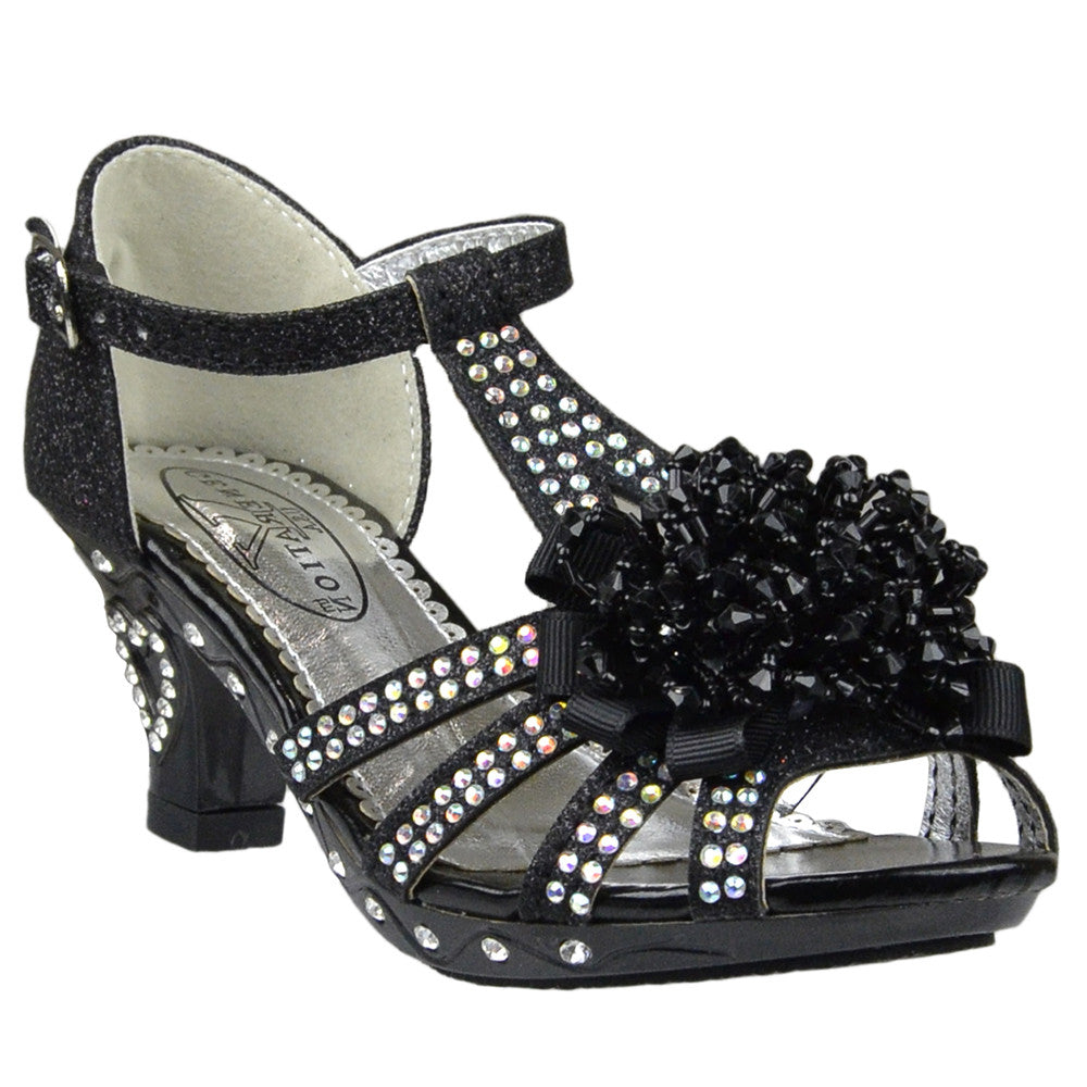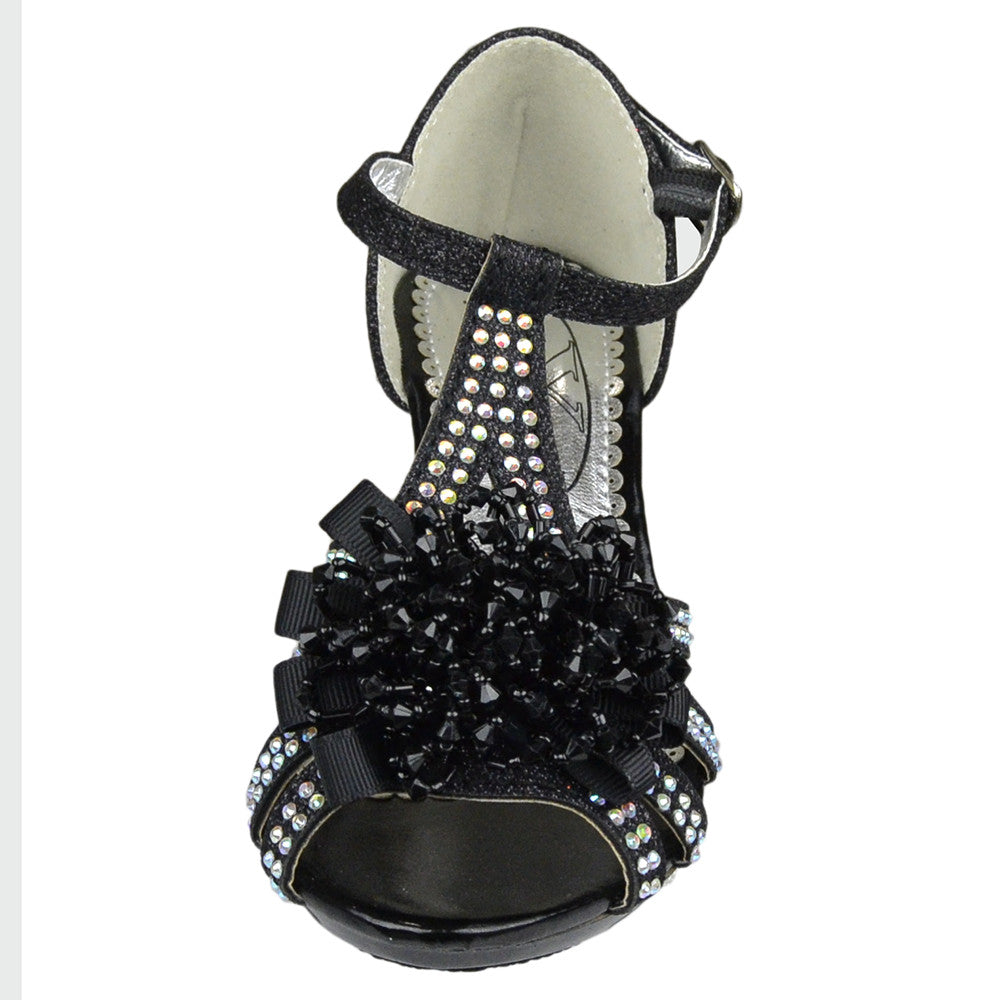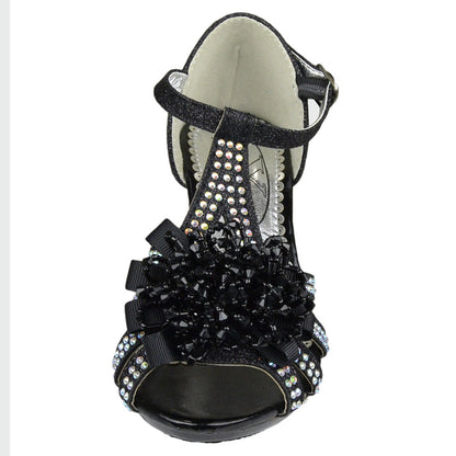 This adorable sandal will be a stunning addition to your little diva's wardrobe. She'll love the beaded accent, rhinestone detail and glitter embellishment.