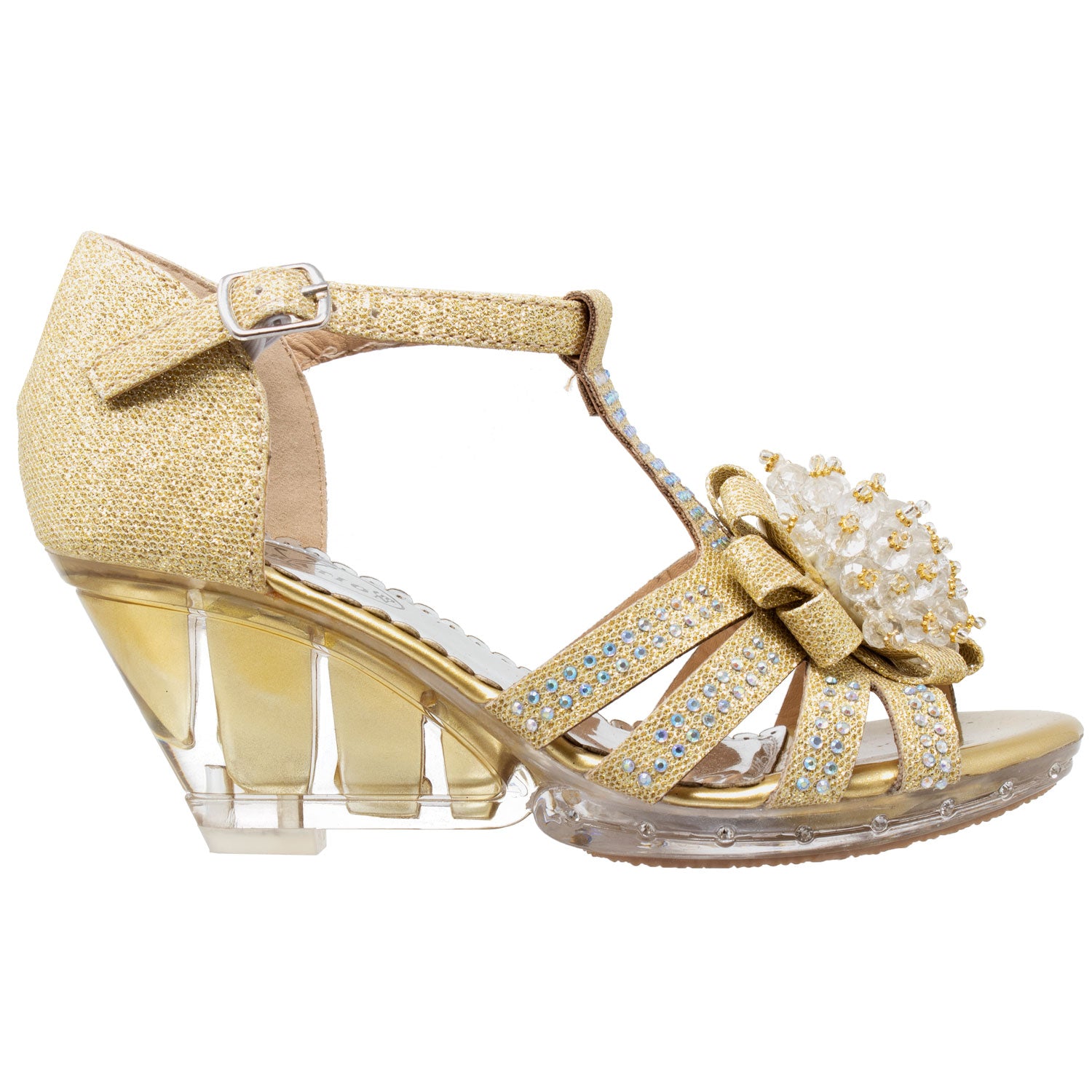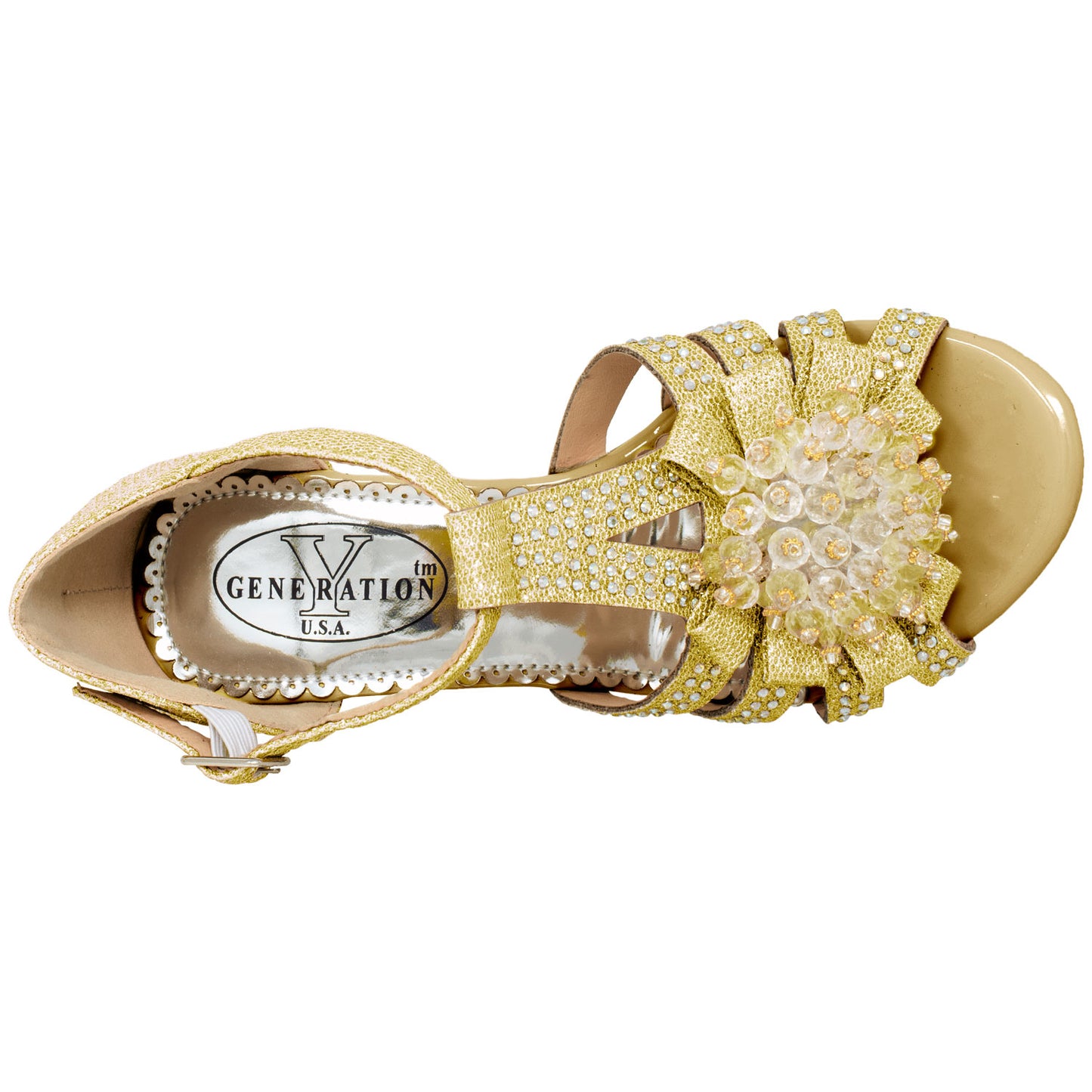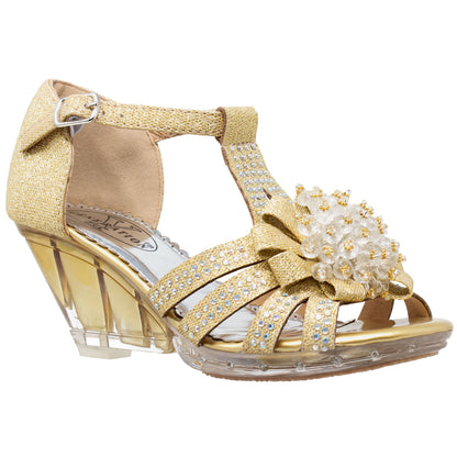 Generation Y Girl's T-Strap Beaded Glit Painted Wedge Sandal