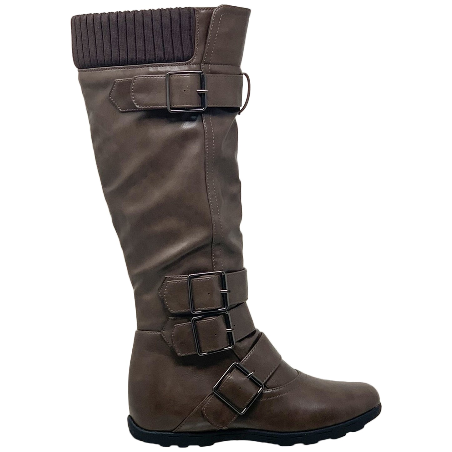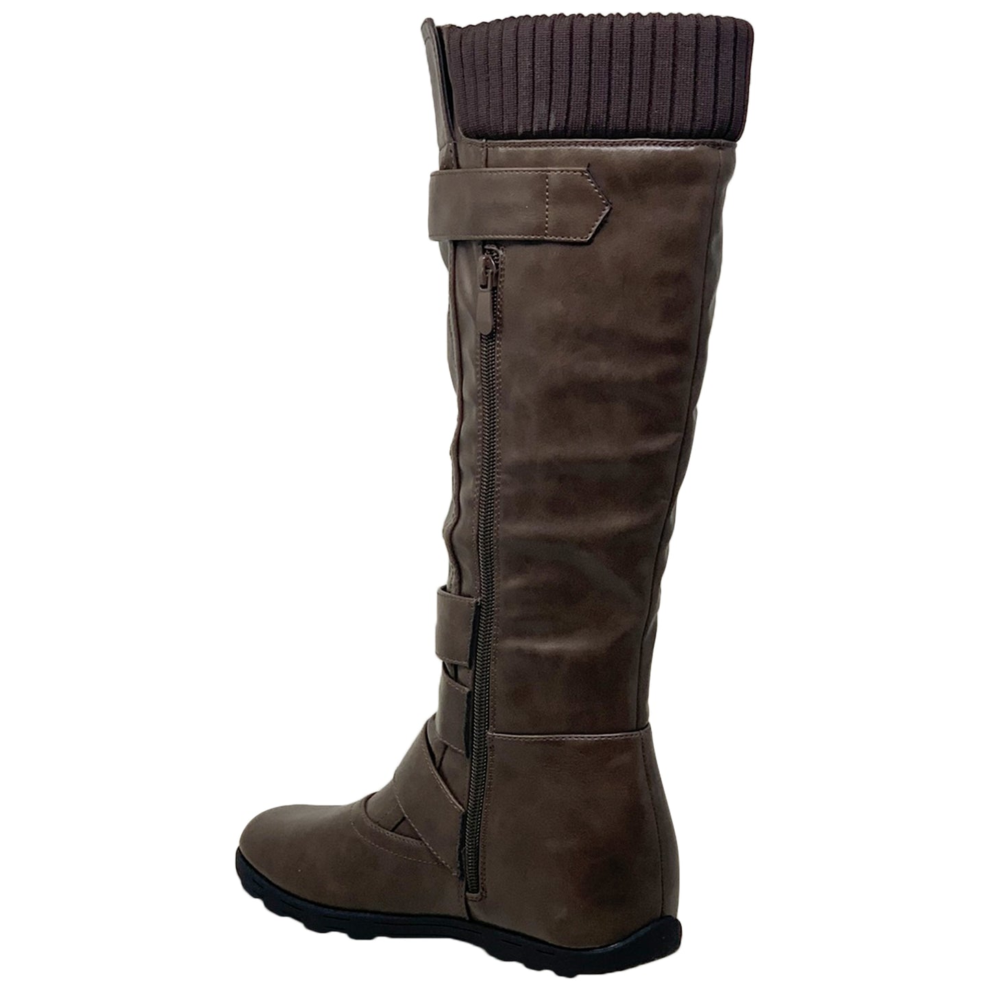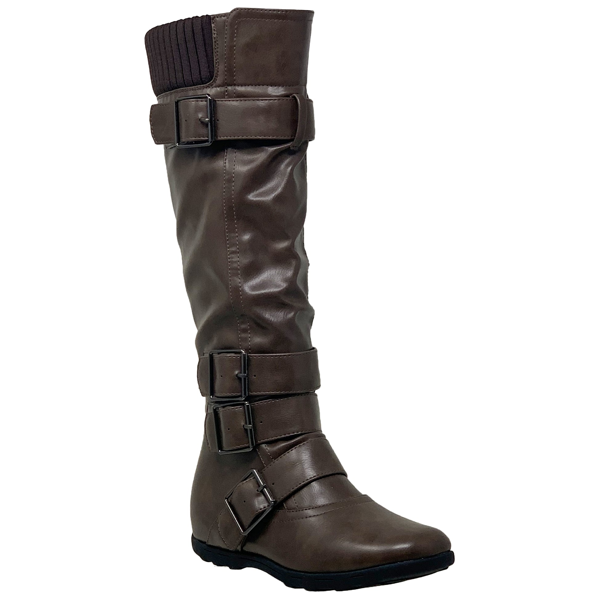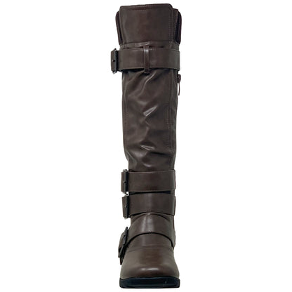 Generation Y Women's Knee High Boots Strappy Buckles Combat Taupe