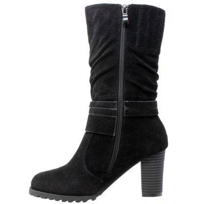 - Material: Synthetic suede upper, rubber sole. Features: Zipper closure