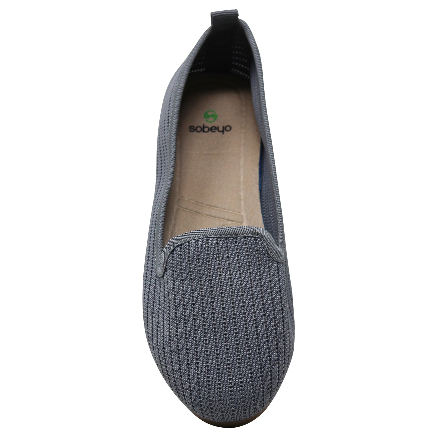 SOBEYO Women's Ballet Flats Sweater Soft Rubber Sole Shoes Gray
