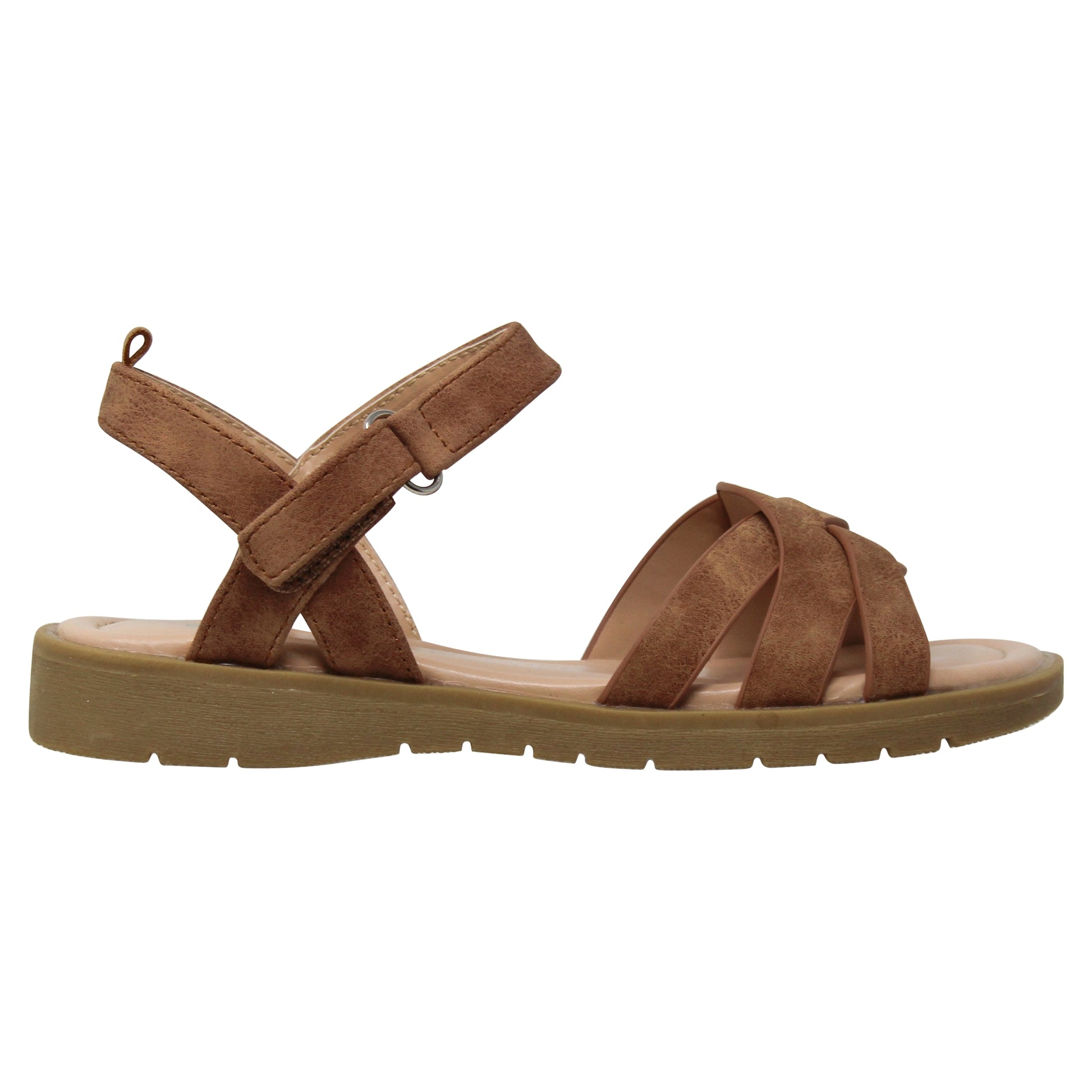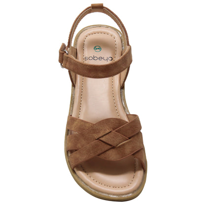 SOBEYO Girls Strappy Platform Cute Ankle Strap Summer Flat Sandals Brown
