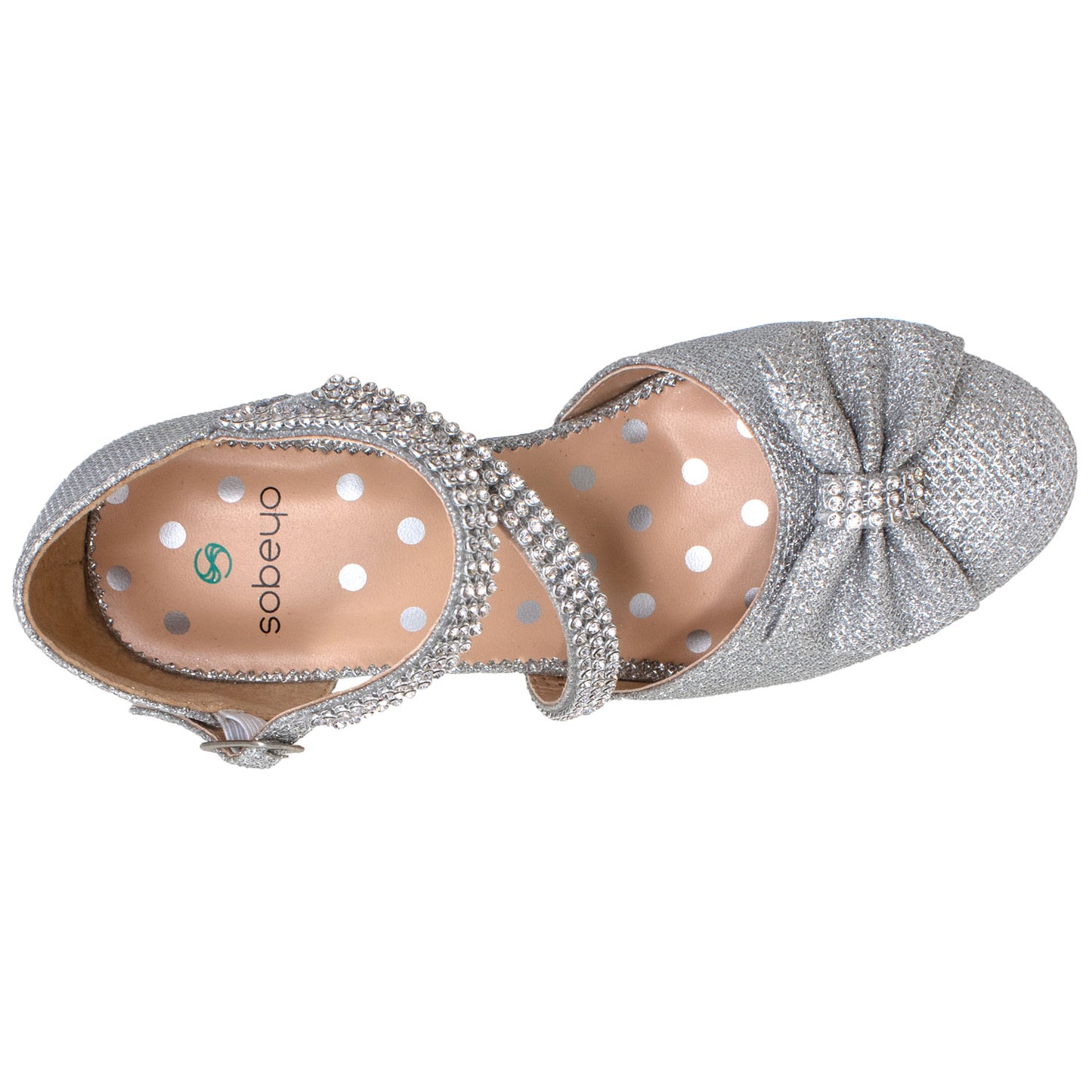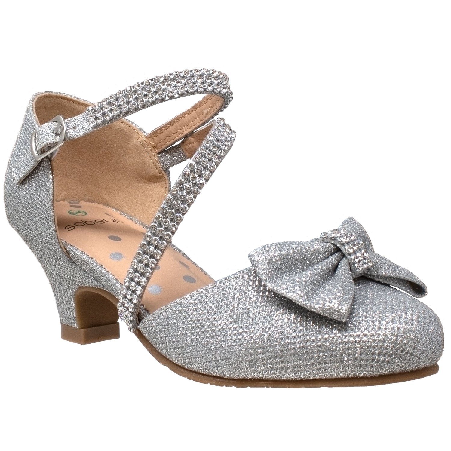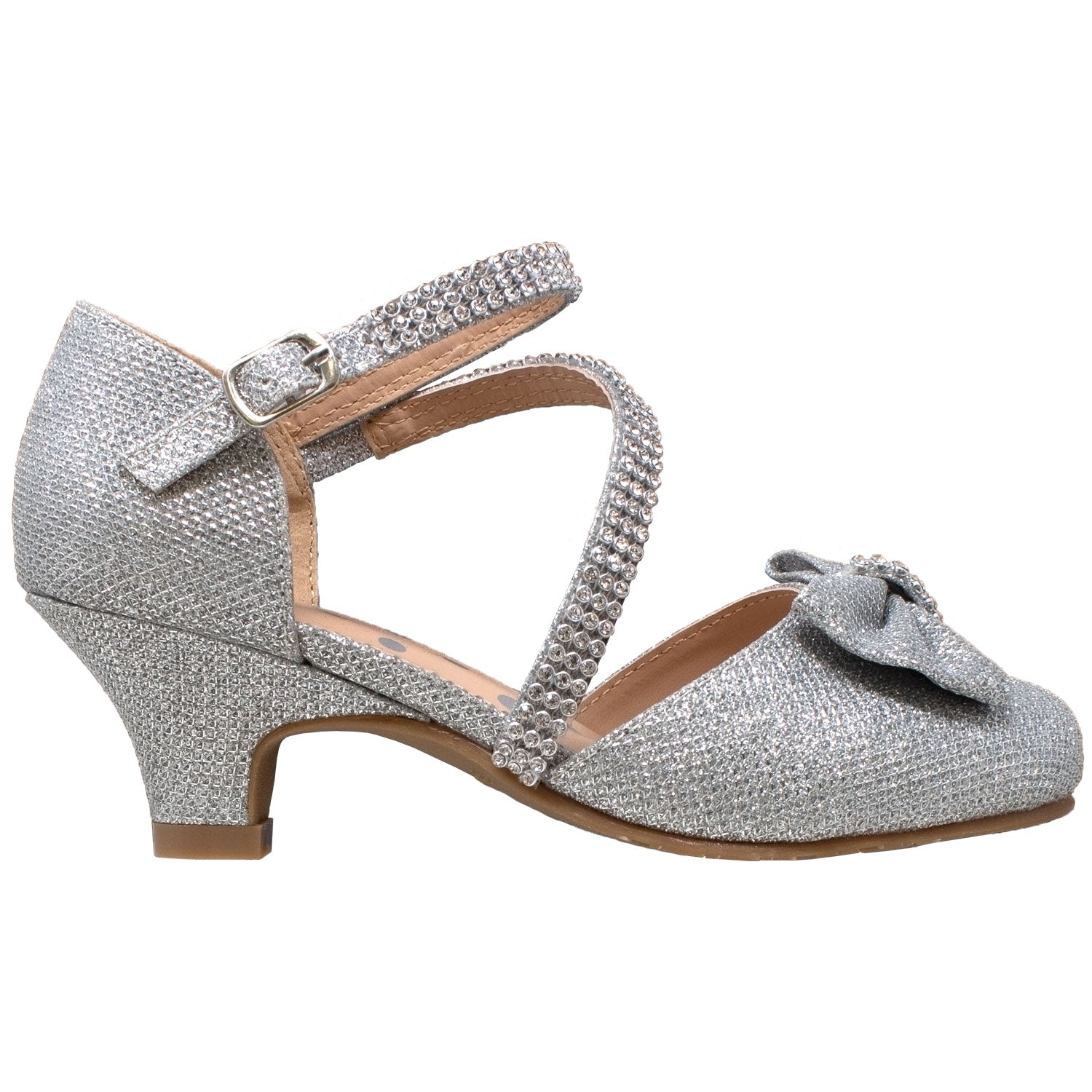 Dress up her outfit with these glamorous shoes. The rhinestone detail and cute bow making it perfect for every special occasion.
