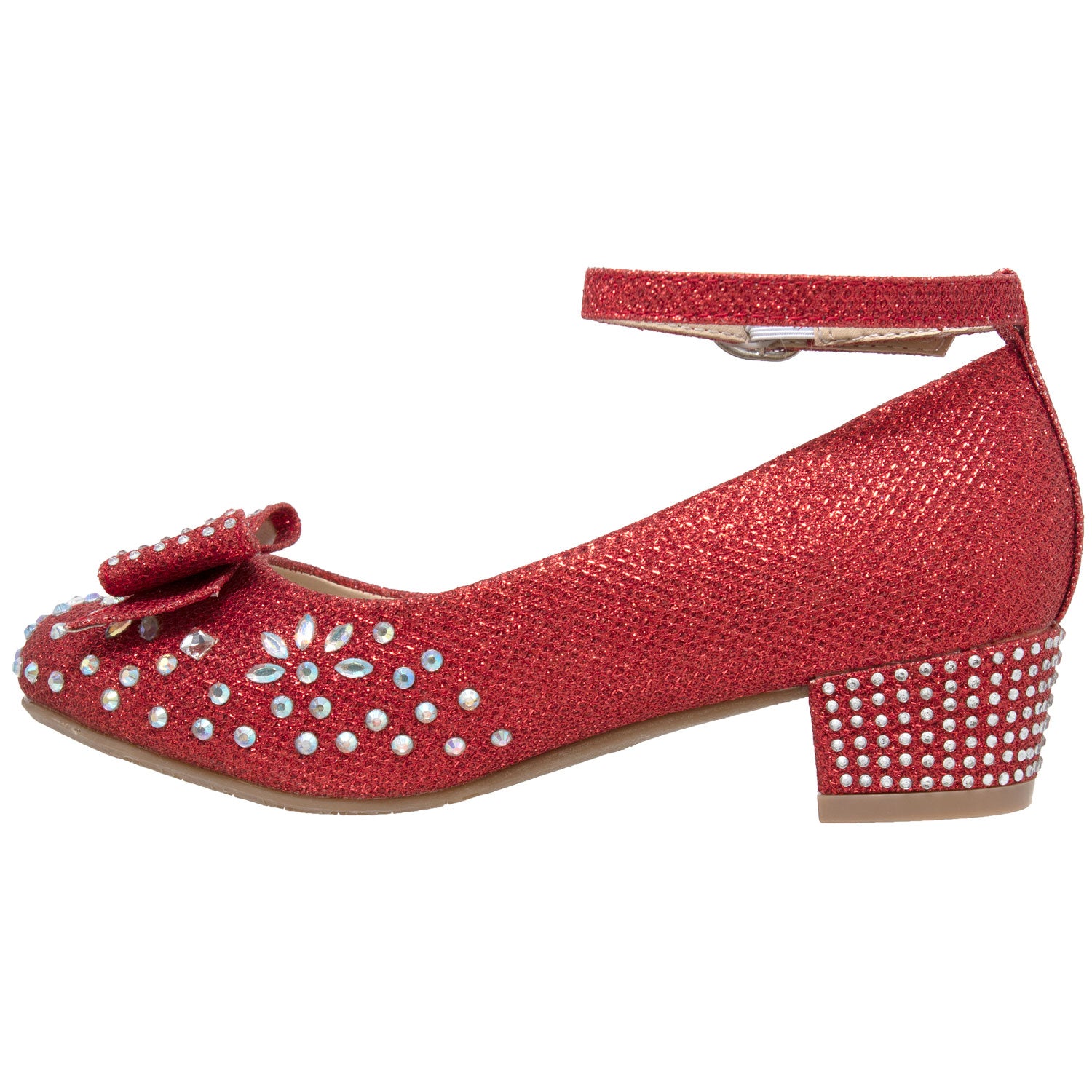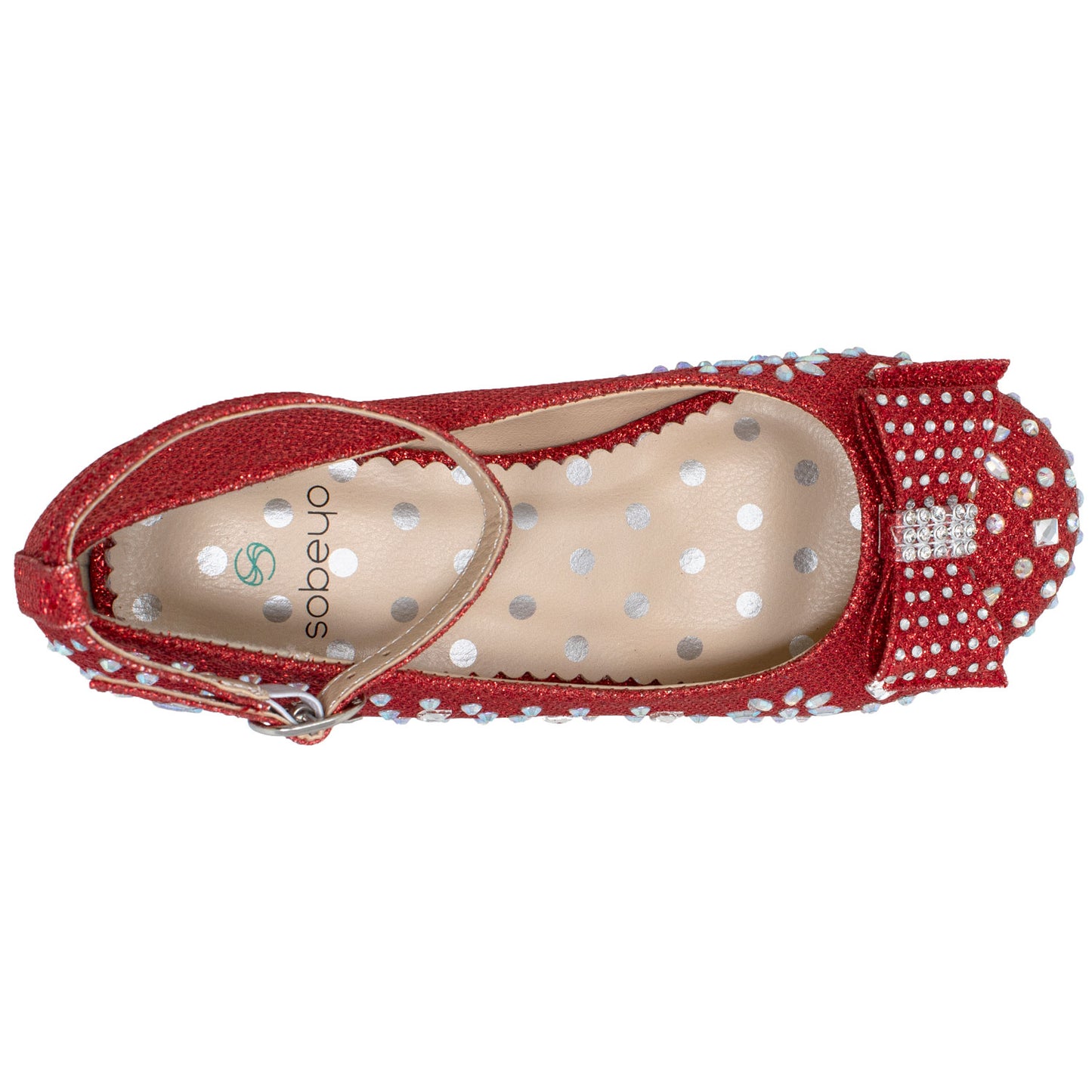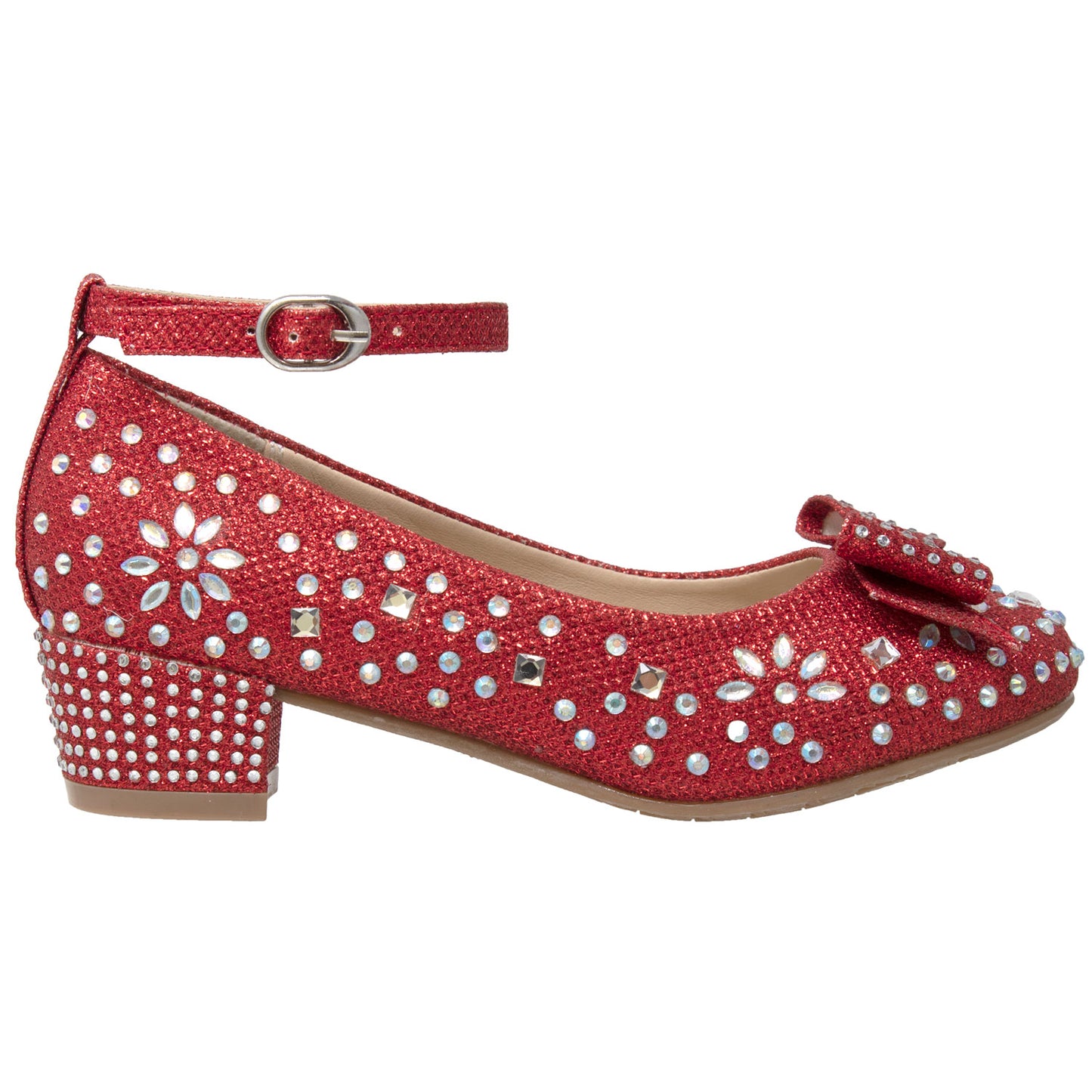 Embellished with sparkly crystals and topped with a cute bow, this flashy mary jane pump is worthy of red carpet occasions.