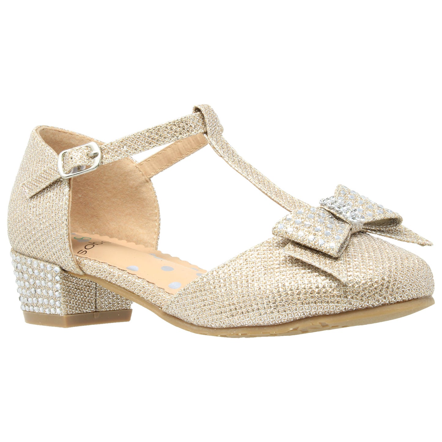 This glamorous mary jane pump is styled with a slim t-strap and a cute sparkly bow. A low heel set with sparkly crystals add the right amount of lift and the all over dazzling glitter puts the finishing touch on this stunning pump.