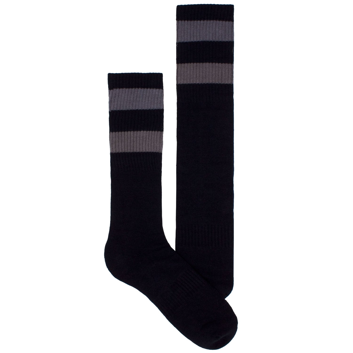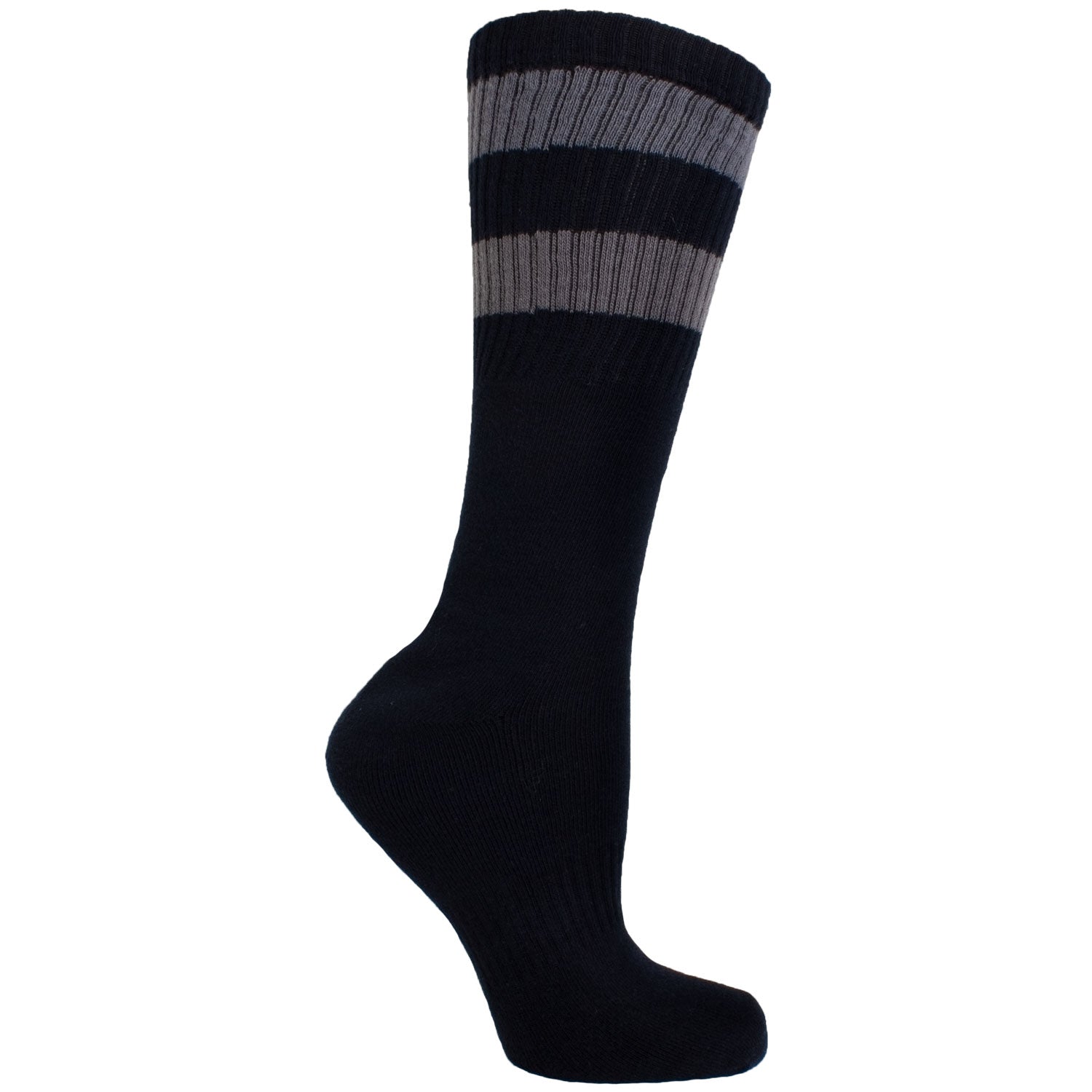Men's Socks Solid Stripe Athletic Performance Sport Ribbed Mid Calf Crew Socks Black