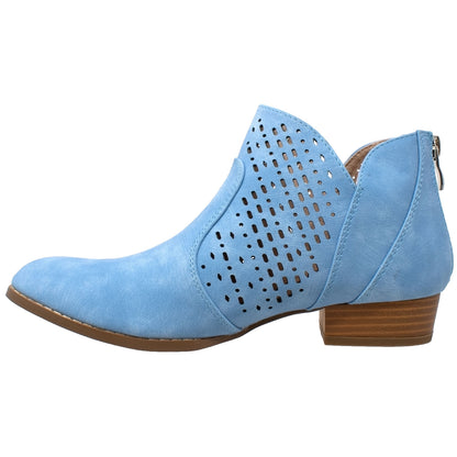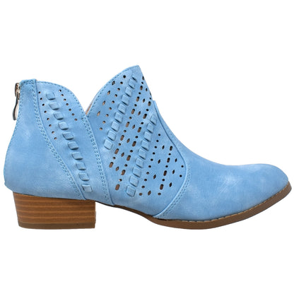 Geometric perforations add a modern look to this western inspired bootie. A just right block heel and low cut sides transform it into a wear all-year-round boot.