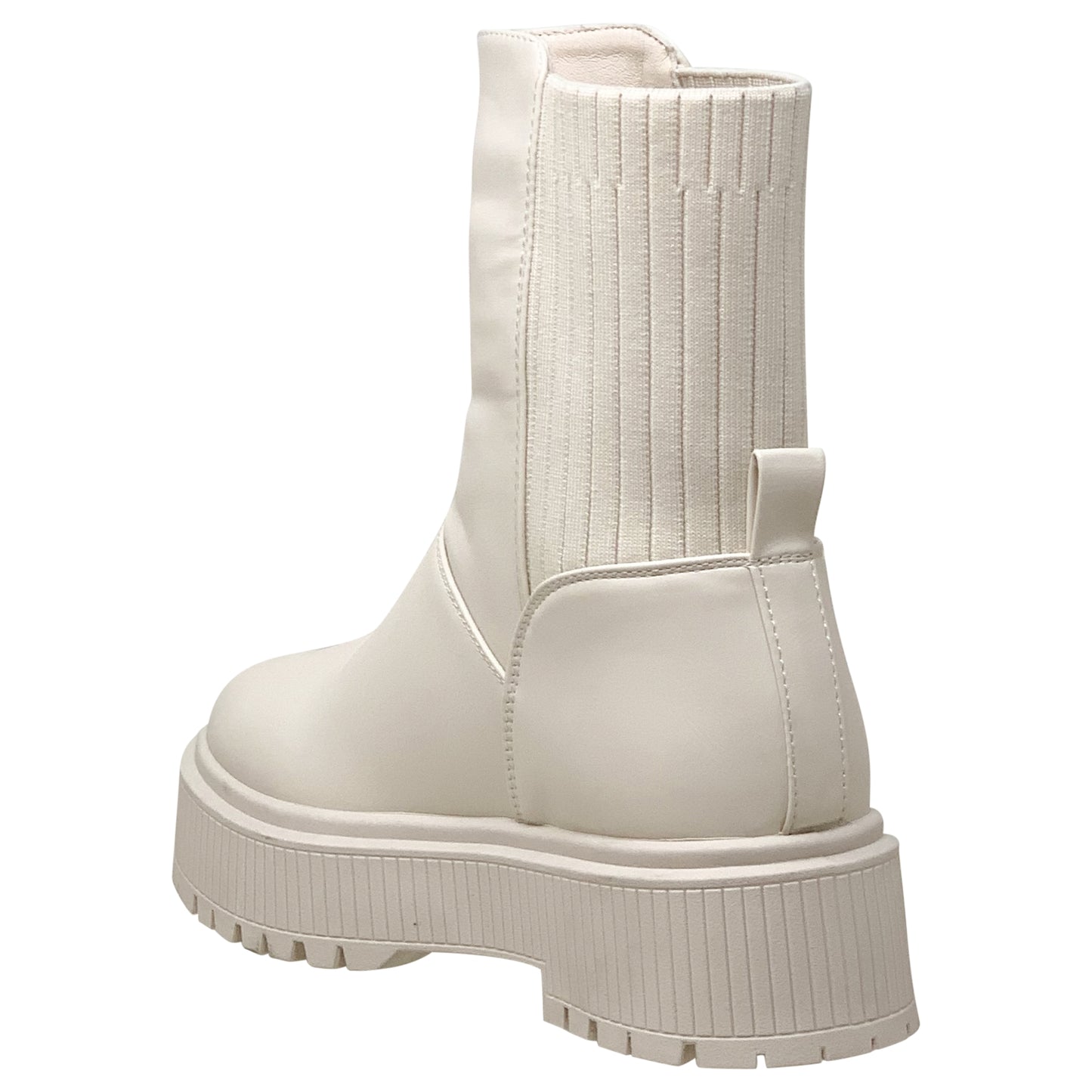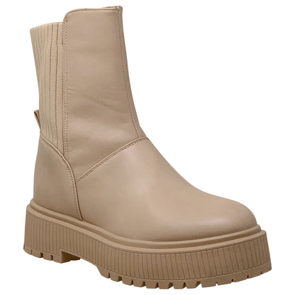 Women's Combat Platform Boots Sweater Elastics Back Stretch Pull On
