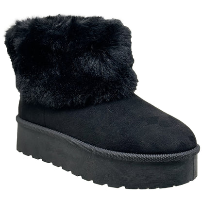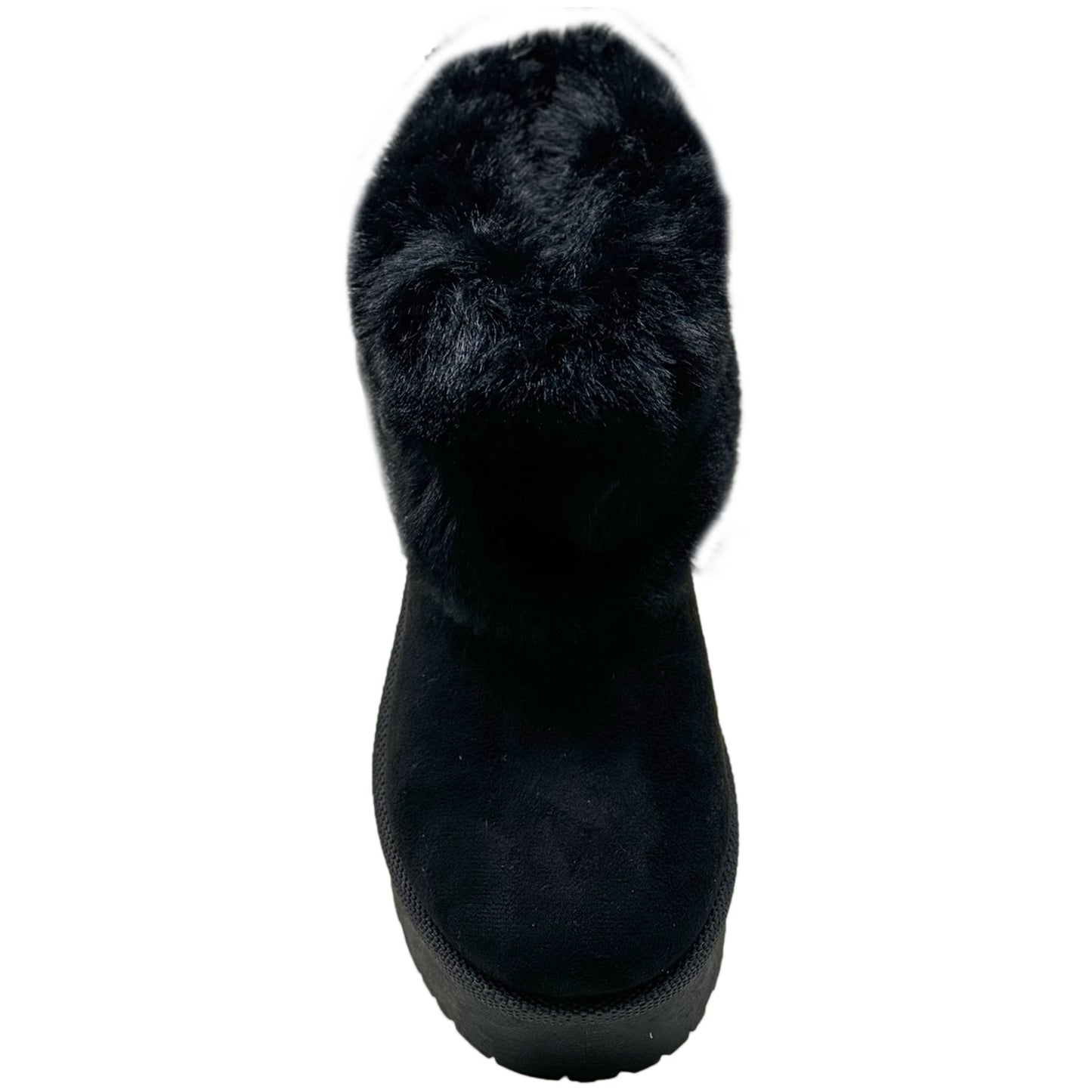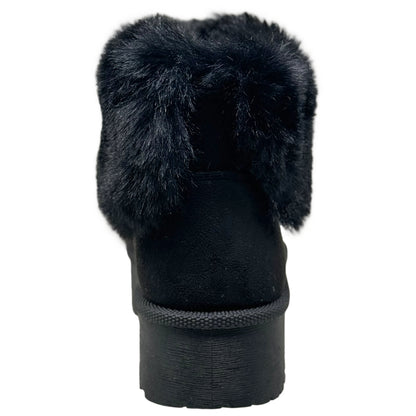 Women's Platform Booties Faux Suede Fur Lining Pull On Cuff Boots Black Suede