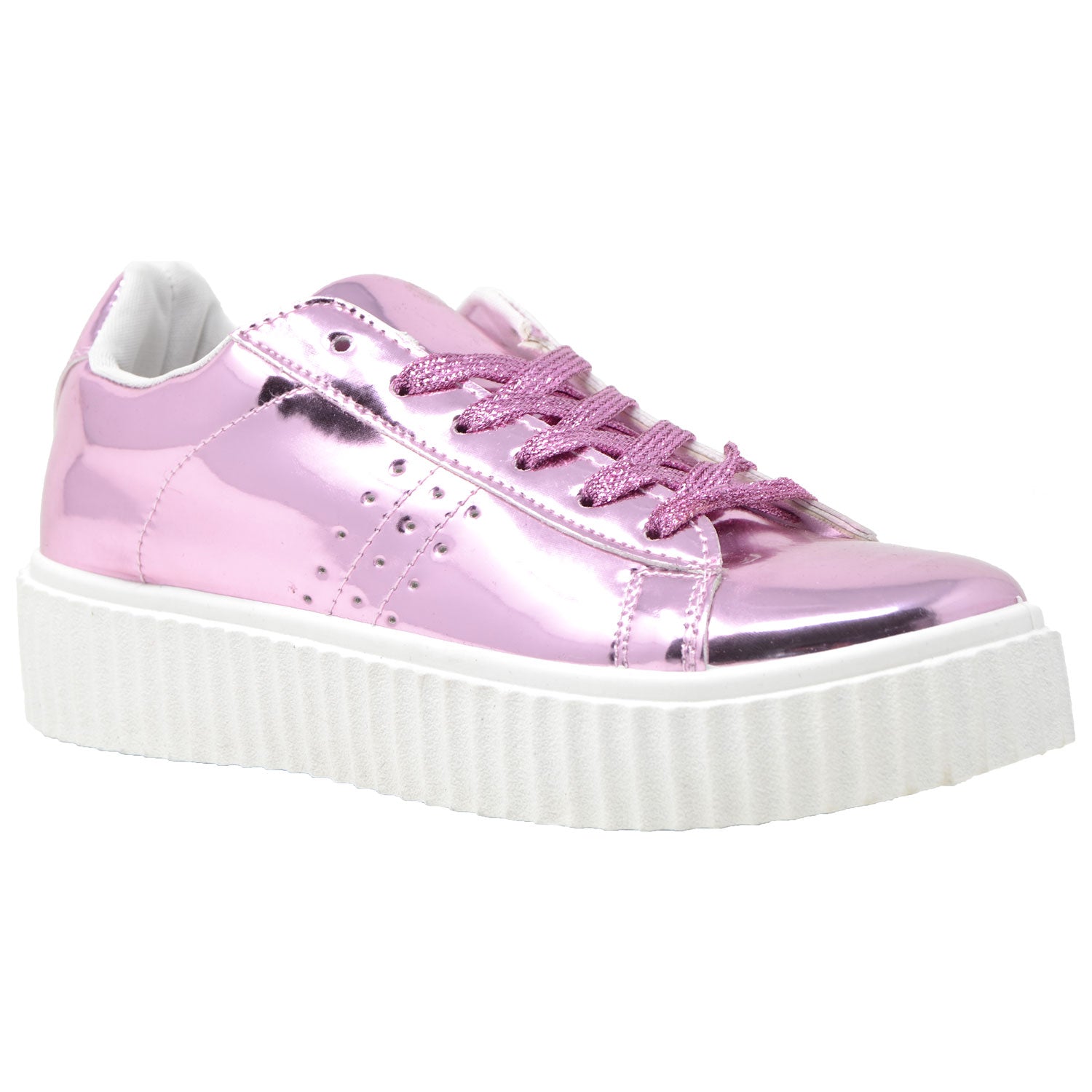 SOBEYO Women's Sneakers Lace-up 6 Eyelets Platform Patent Shoes Pink