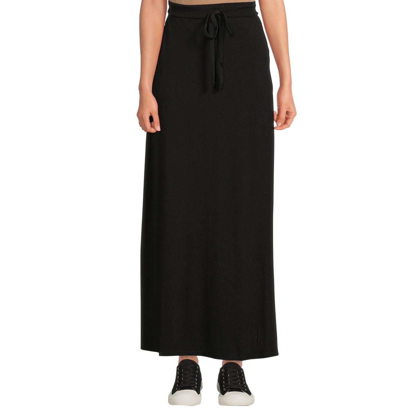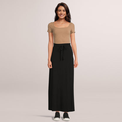 Women's Maxi Long Skirt Drawstring Waist Pockets Soft Comfort Fabric Black