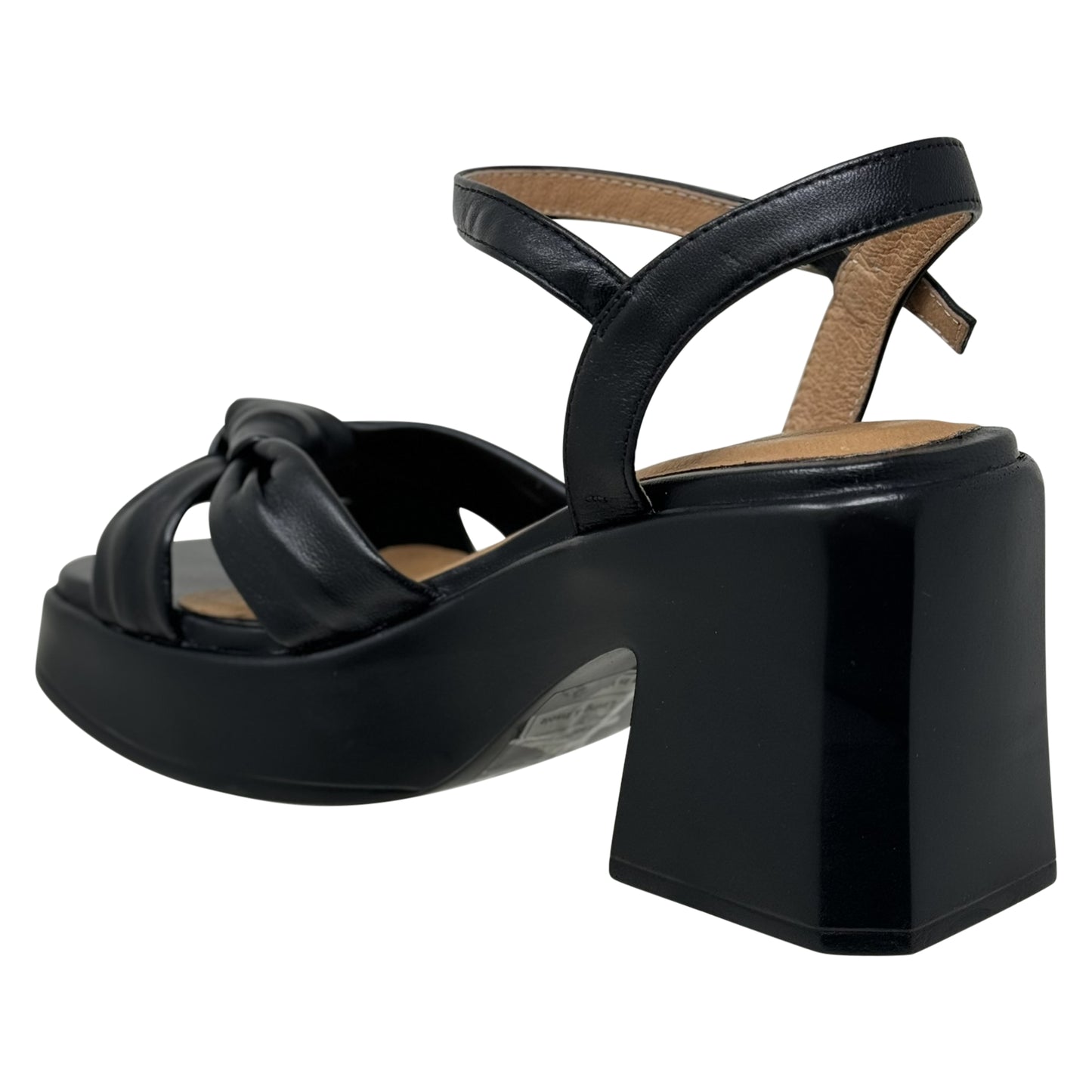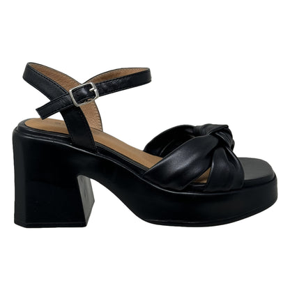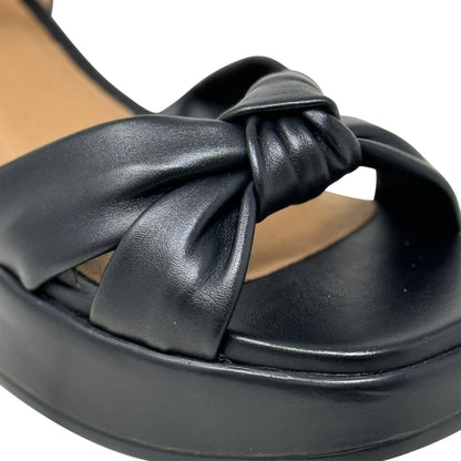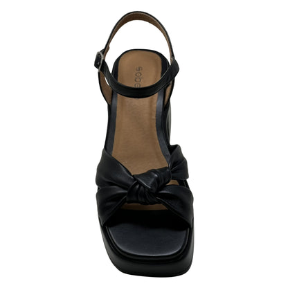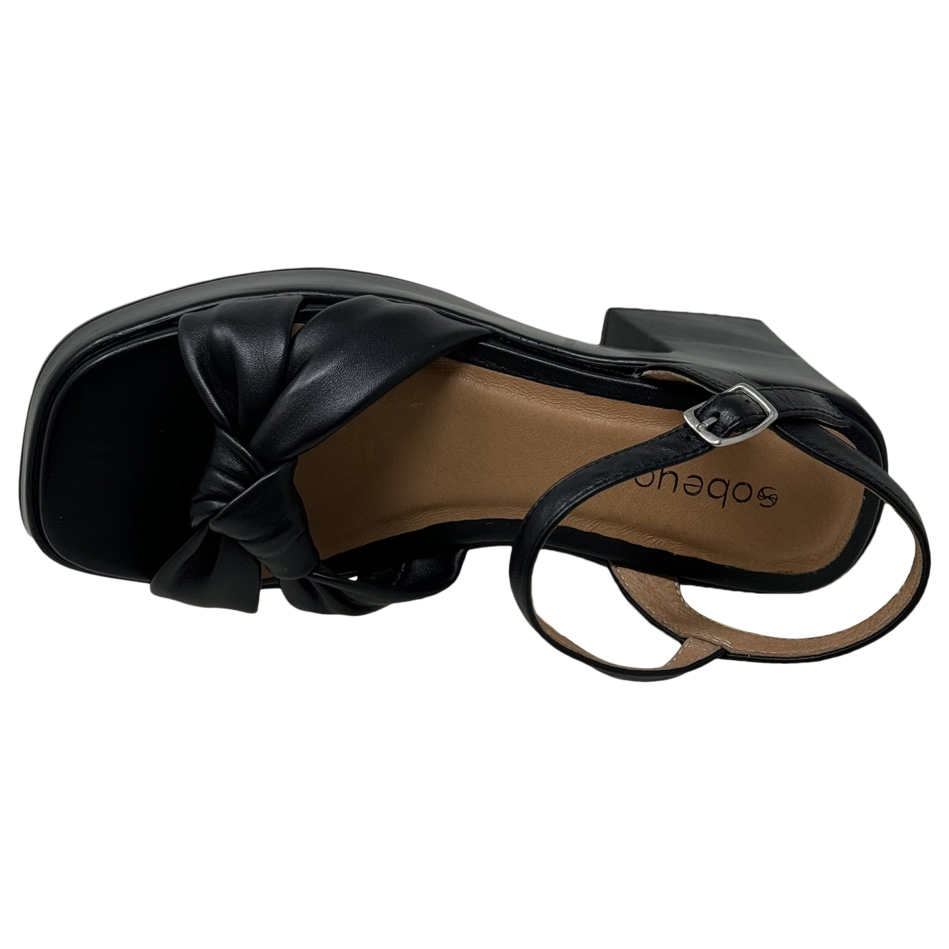 SOBEYO Cow Leather Knot Upper Sandals Bell-Shape Block Heels Ankle Strap Black