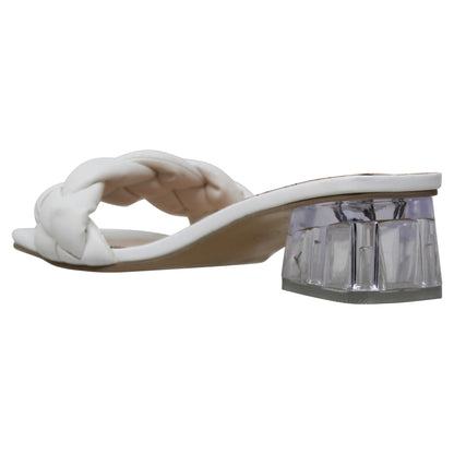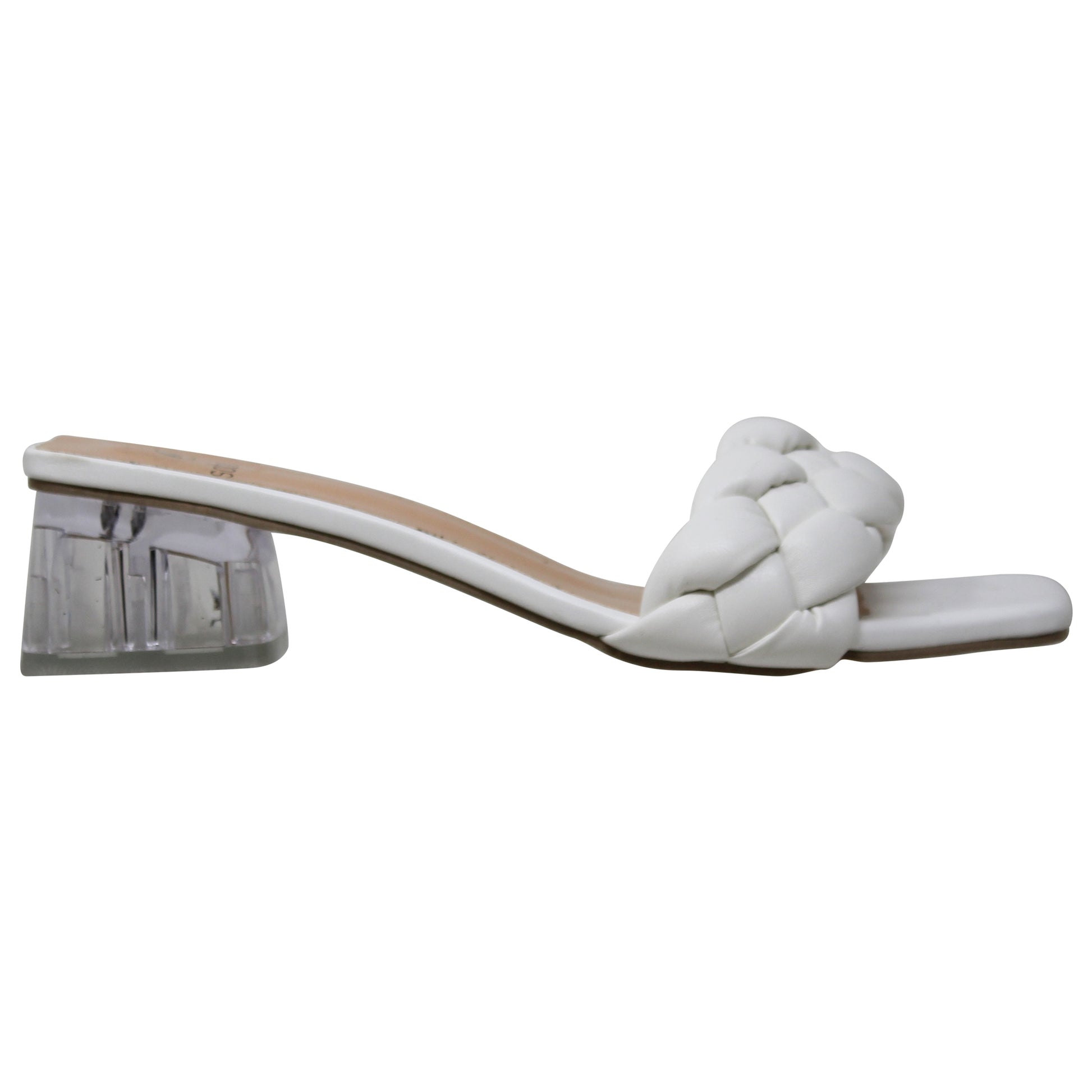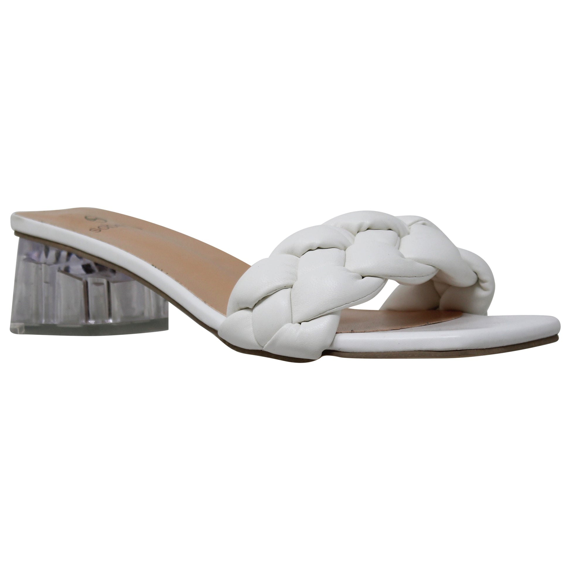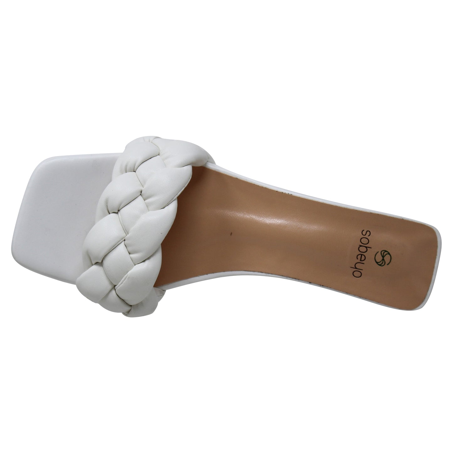 SOBEO Strappy Sandals Braided One Band Low Clear Heels White
