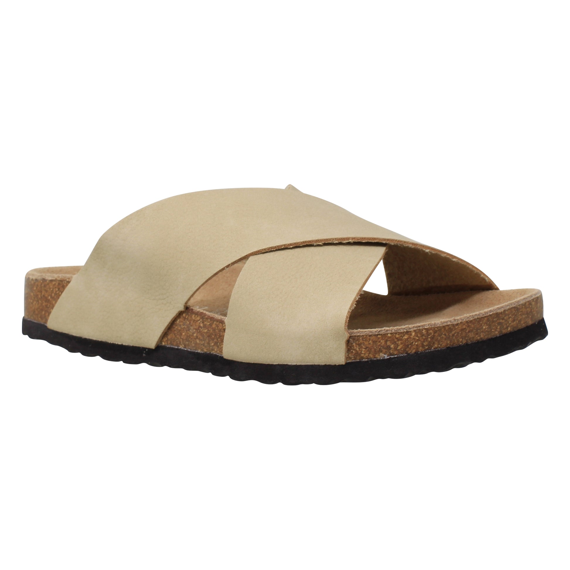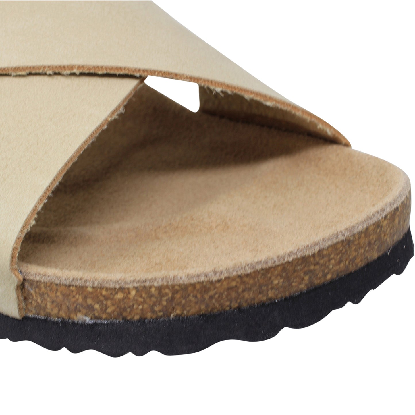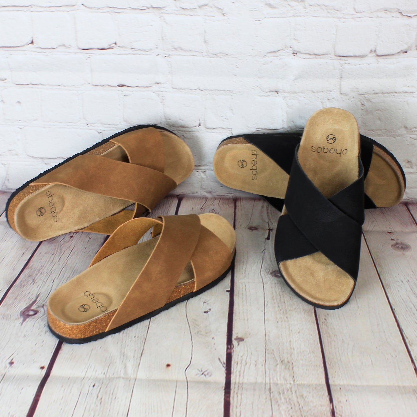 SOBEYO Classic Cork Sandals Criss-Cross Strap Slip On Taupe