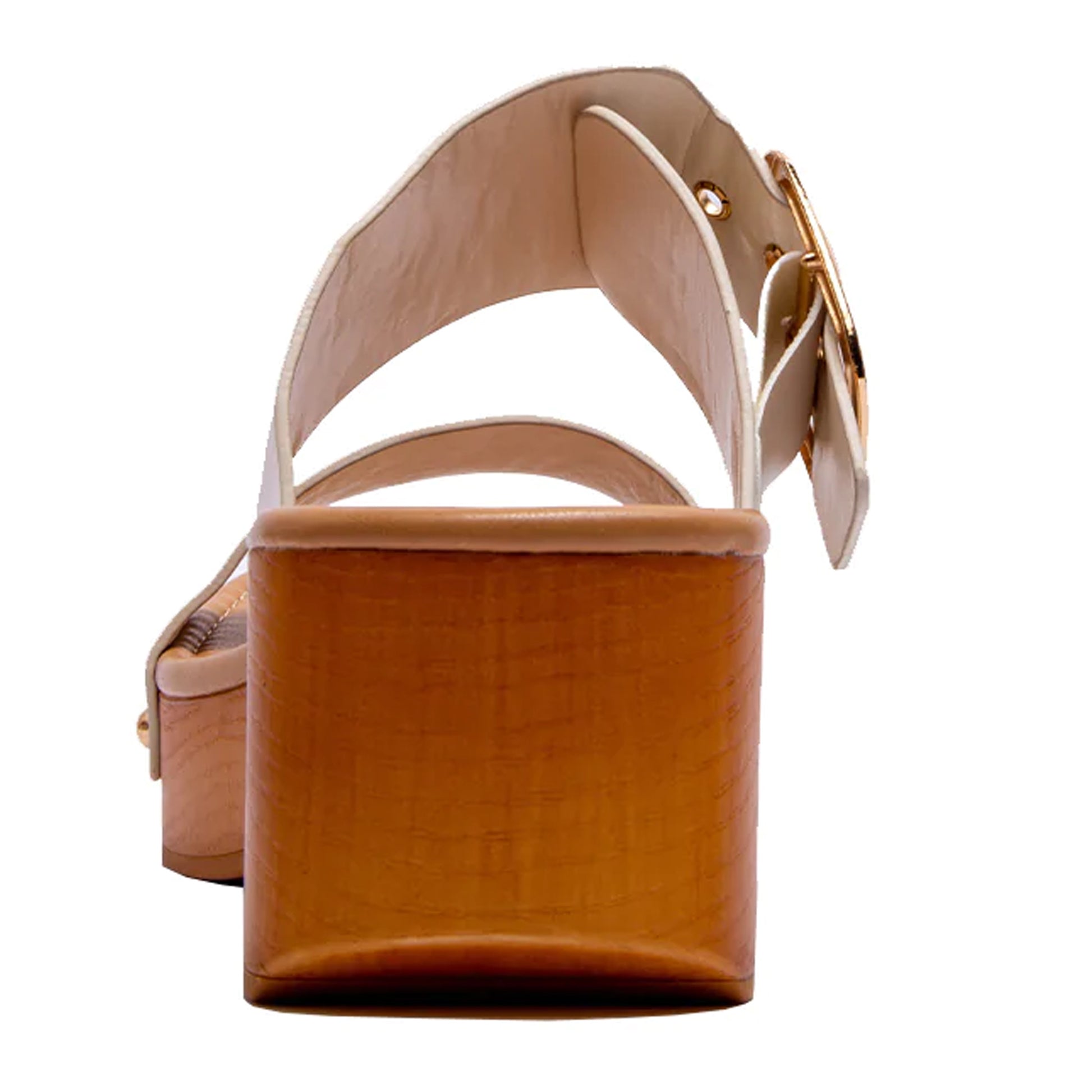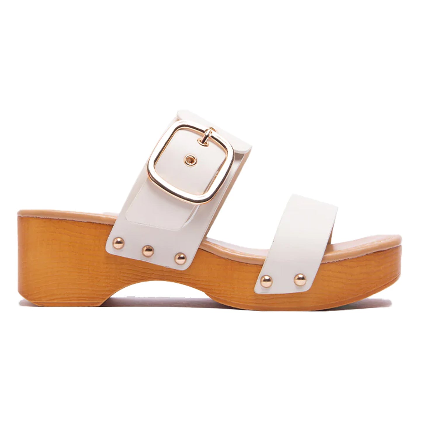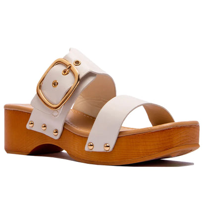 Double Adjustable Buckle Straps Slip On Wood Accents Sandals White