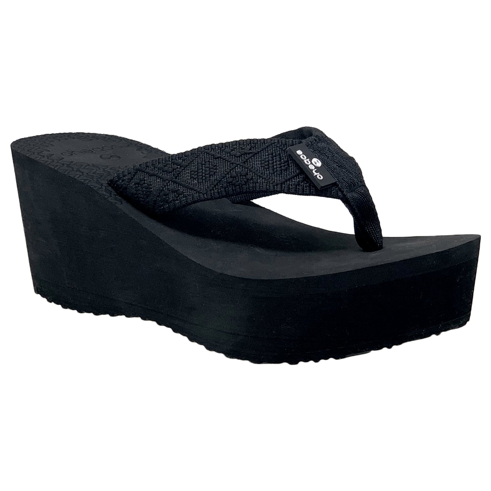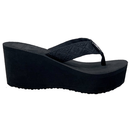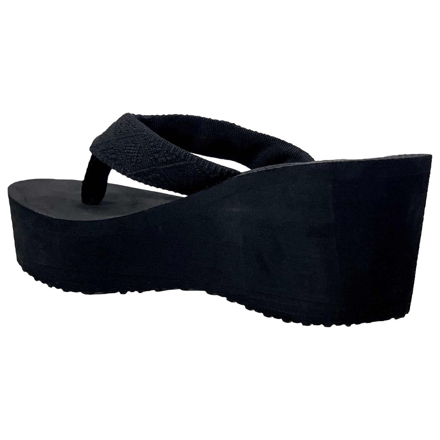 Step up your summer footwear game with a thick platform wedge flip-flop. Designed for both style and comfort, these shoes feature an Eva sole and arch support to keep your feet happy all day long. With a trendy thick thong design, these flip-flops are perfect for any summer outfit.