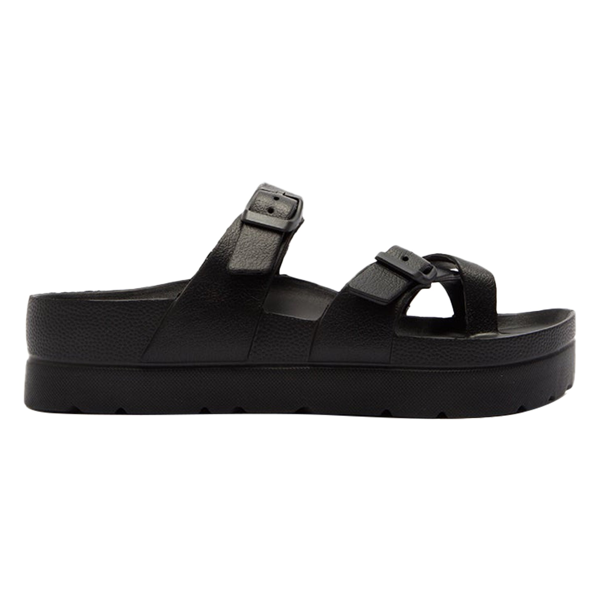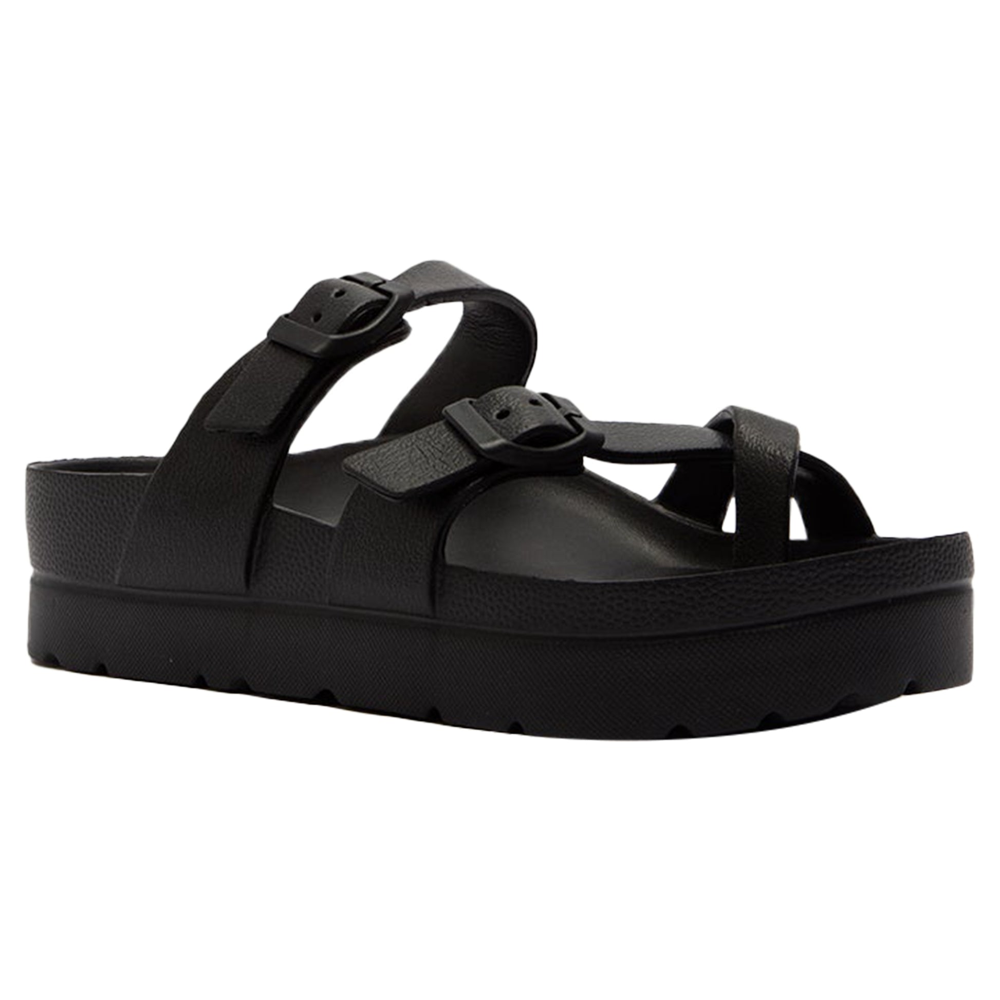 SOBEYO Women's Strappy Platform Sandals Ring Toe Double Buckles Black