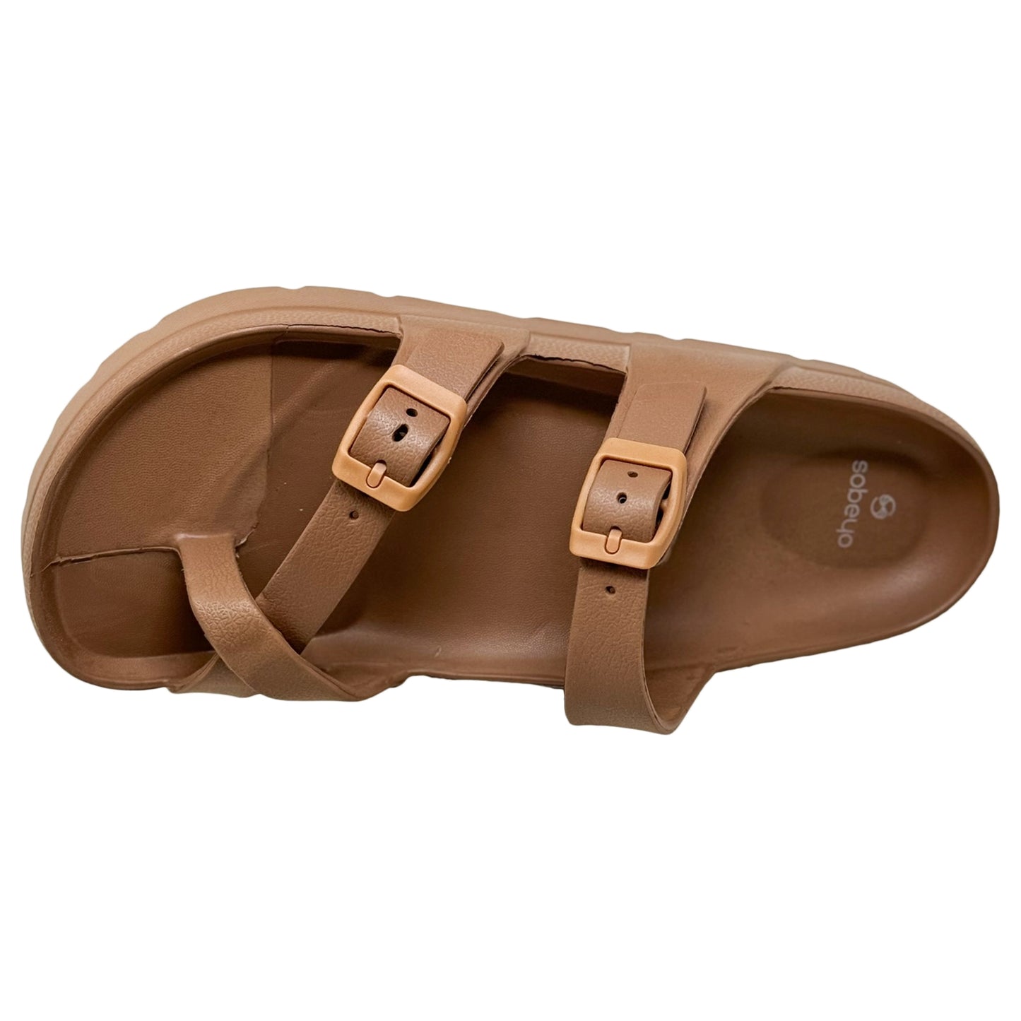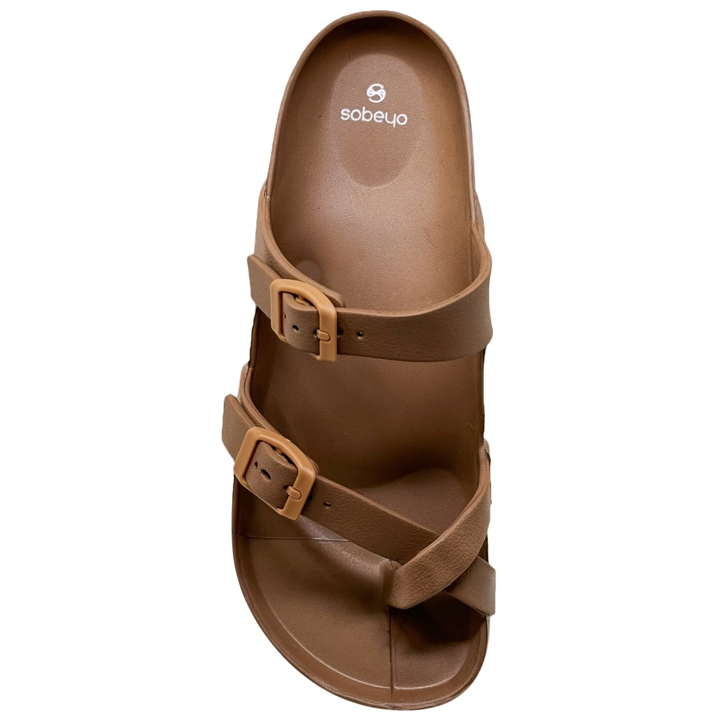 SOBEYO Women's Strappy Platform Sandals Ring Toe Double Buckles Tan