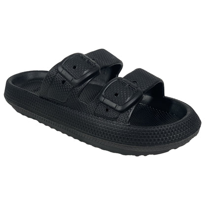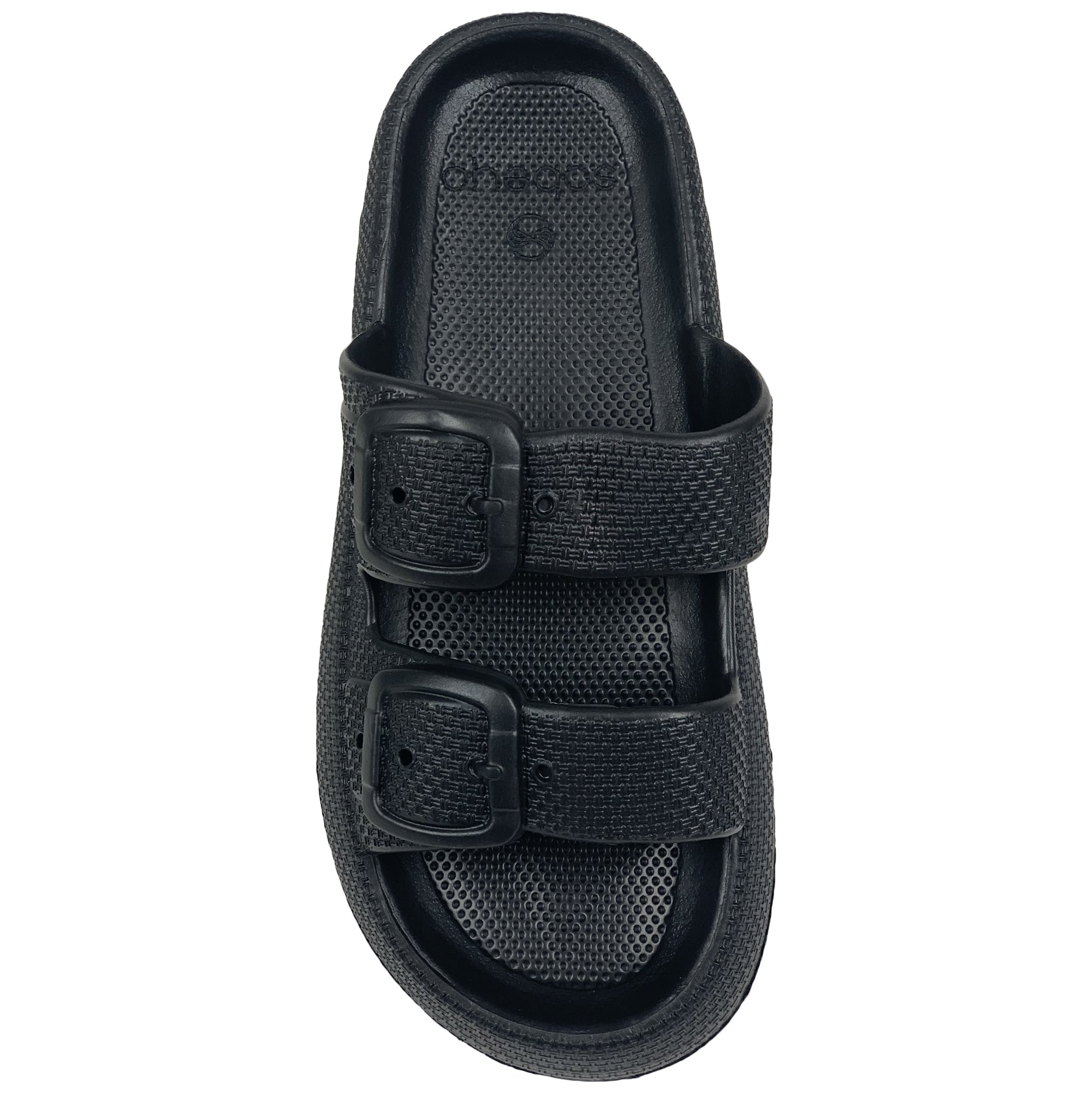 Women's Double Straps Buckles Sandals Flatform Slip On Cute Light-Weight EVA Flip Flops