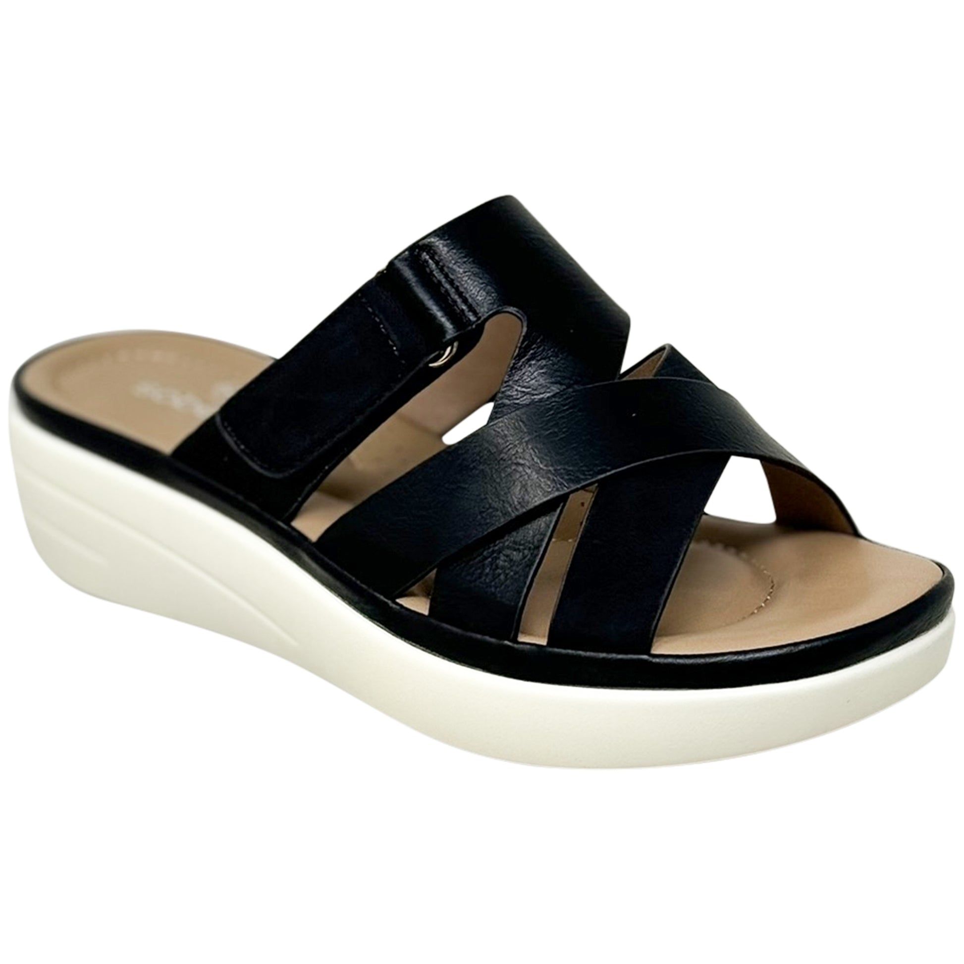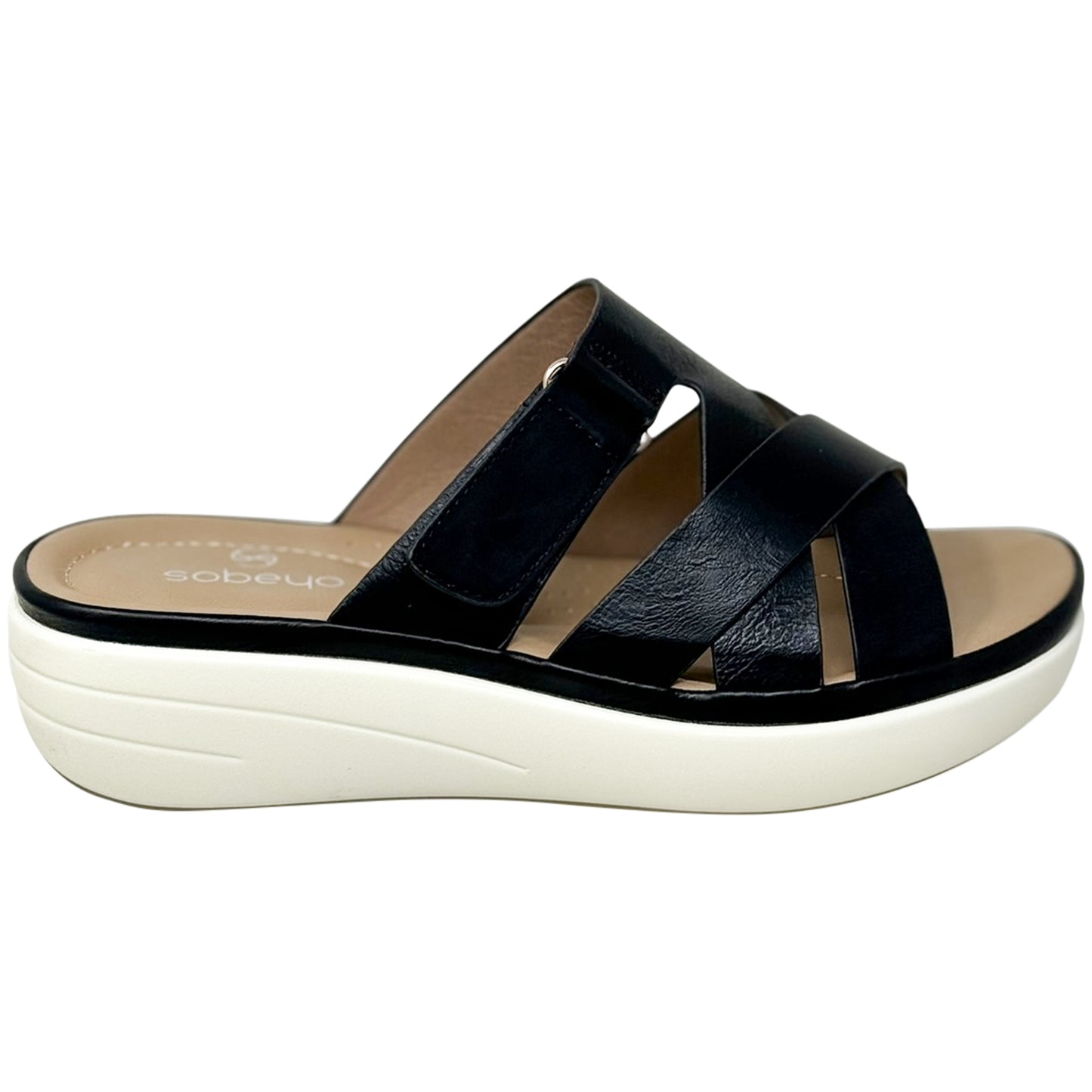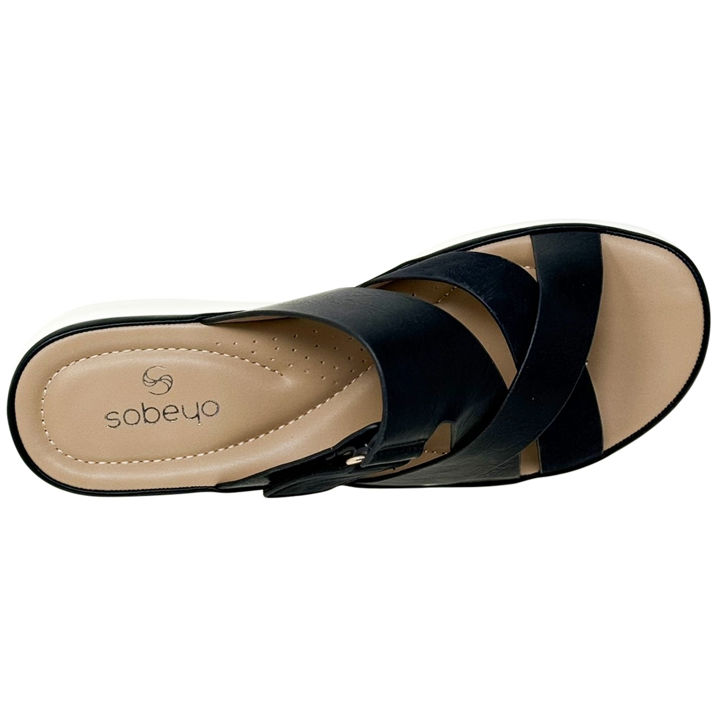 SOBEYO Strappy Buckle Platform Cushion Sandals Black