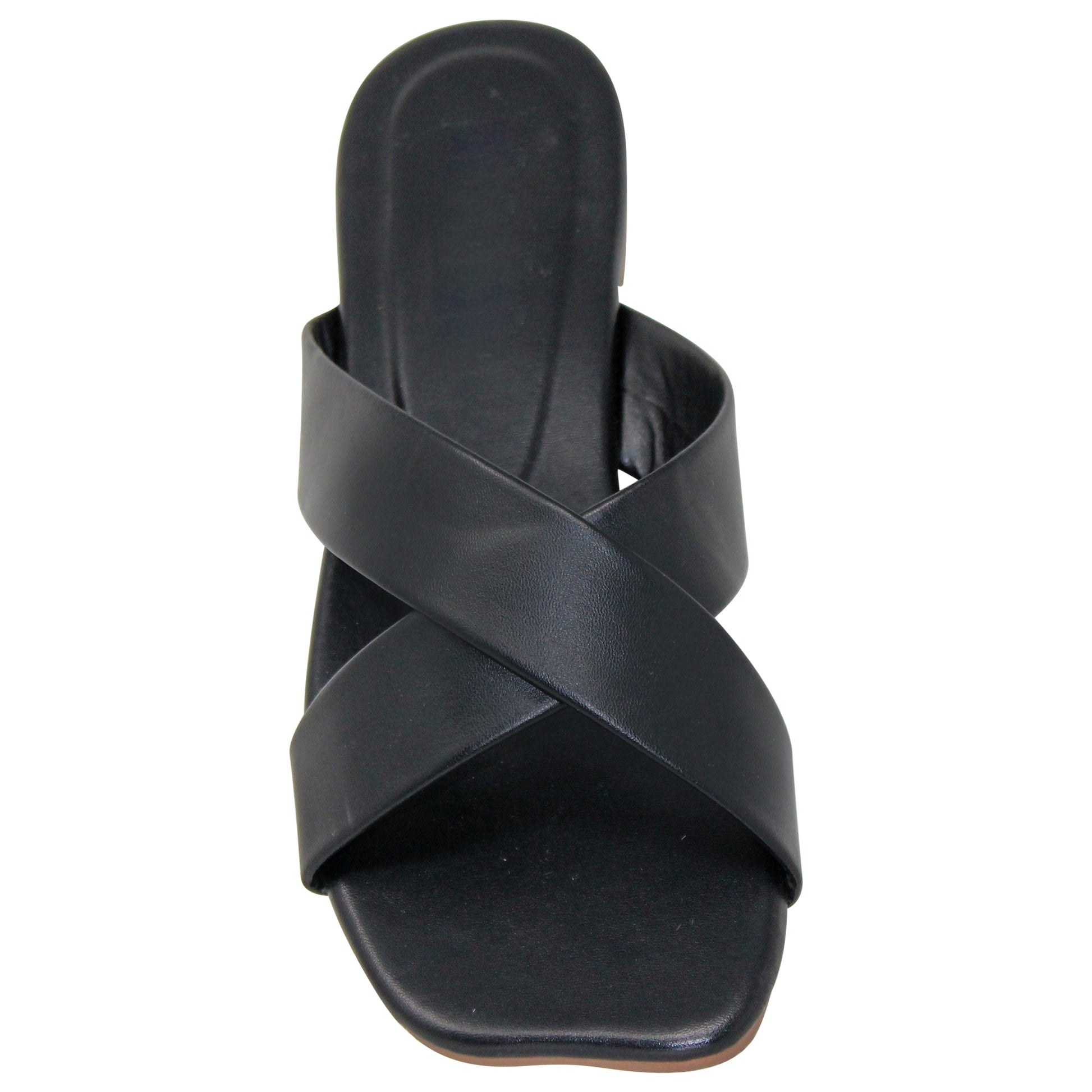 SOBEYO Square Toe Crossband Slide Sandals Beige Black