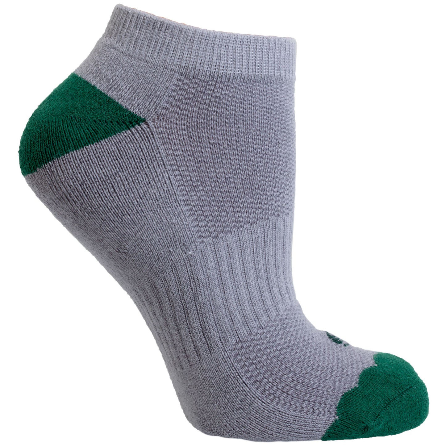 These socks are full of personality with its bright color accent and trendy scalloped trim. The addition of awesome features such as breathable mesh fabric, arch support, cushioned heel and toe ensures that your feet will stay comfortable, cool and secure all day.