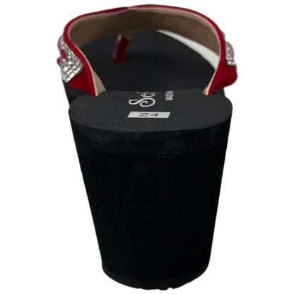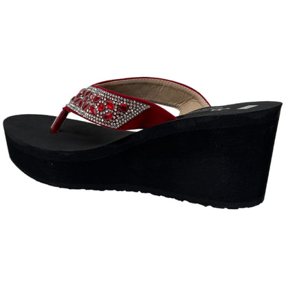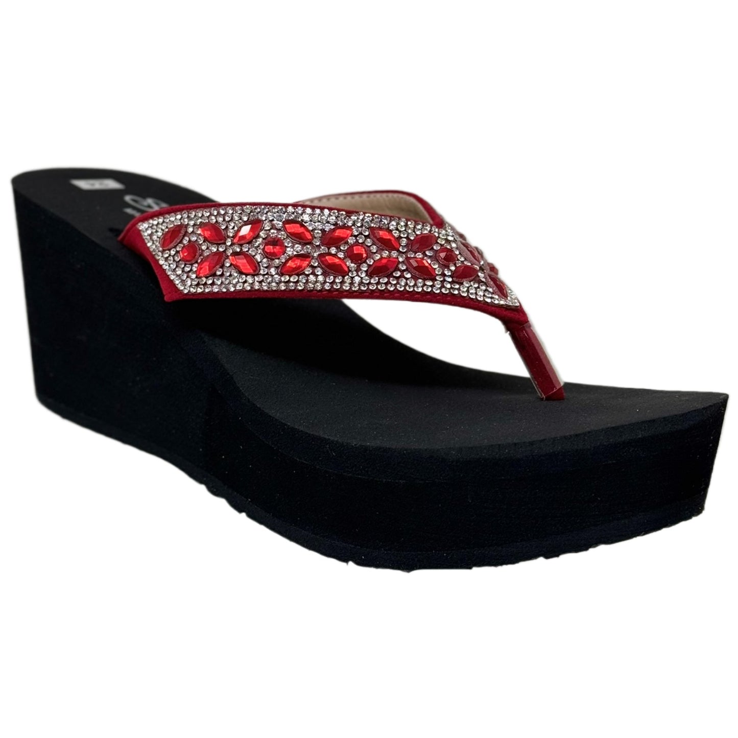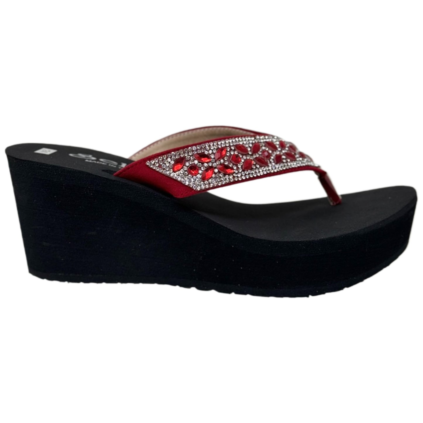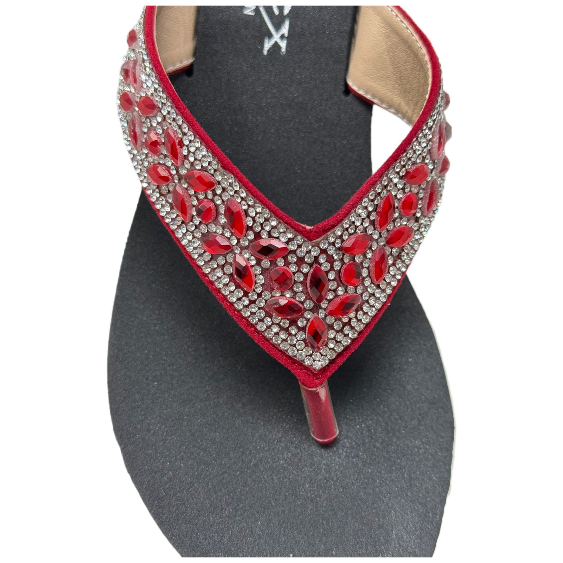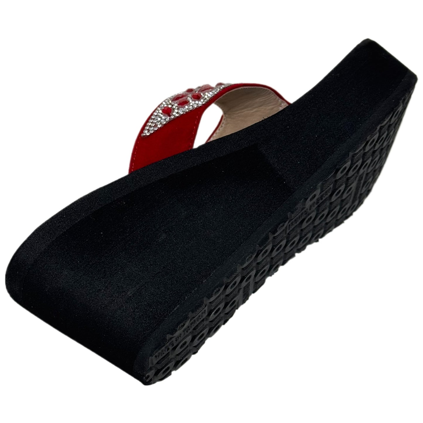 Womens Platform Sandals Rhinestone Wedge Flip Flops Sparkling Beaded Strap Red