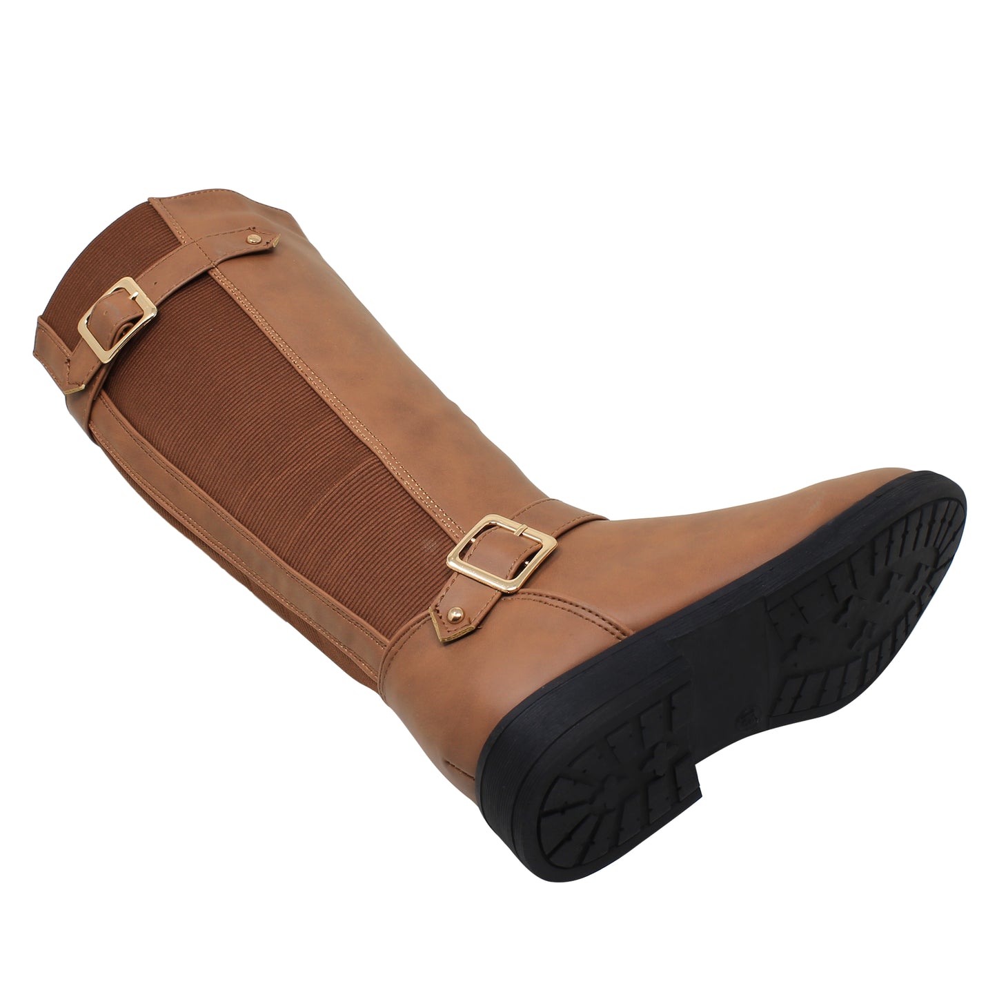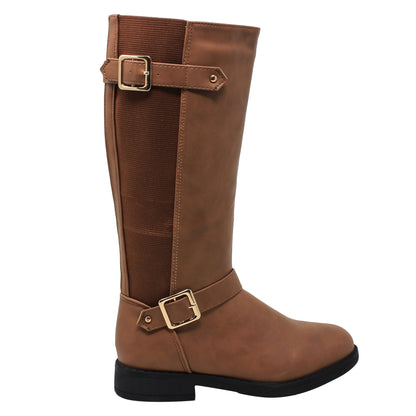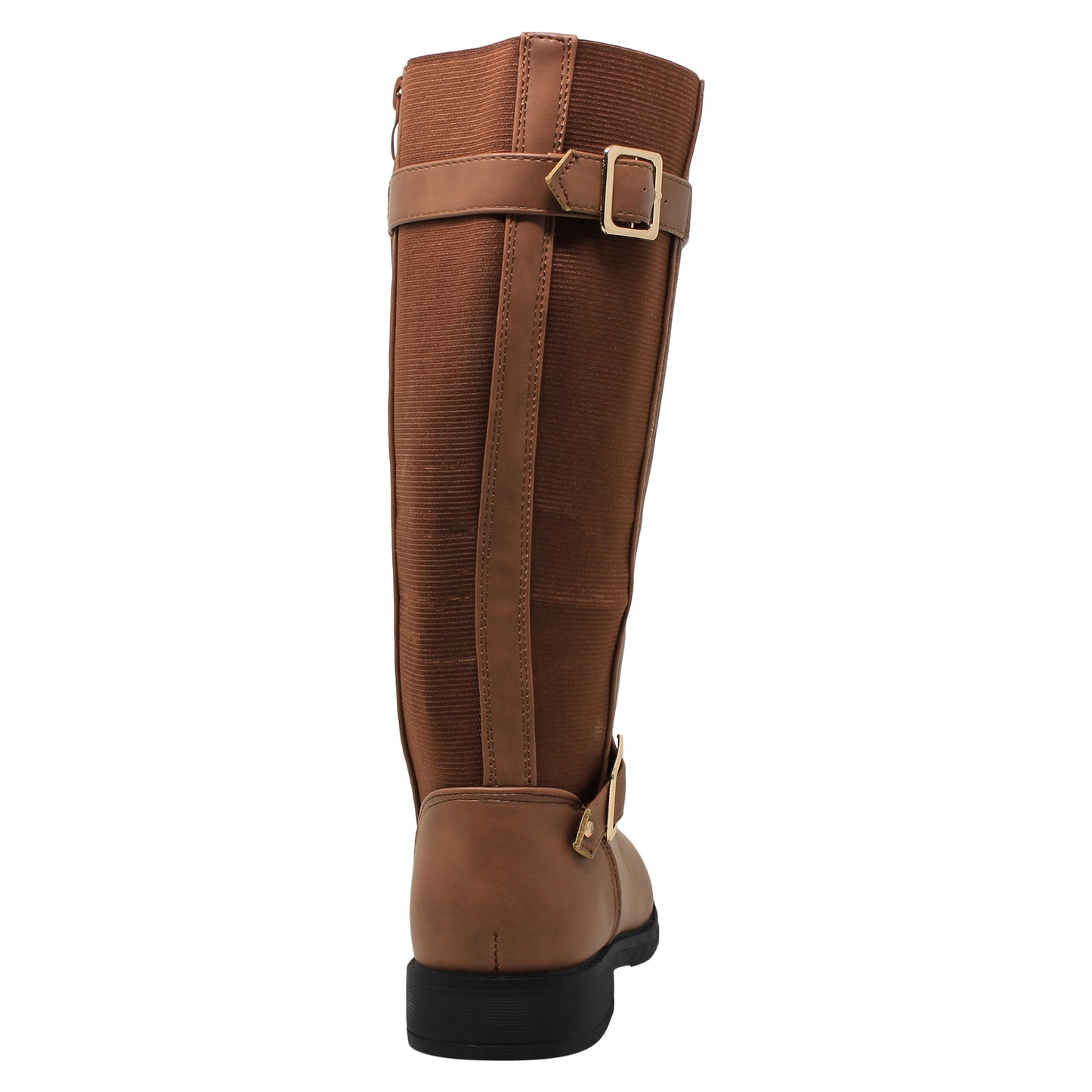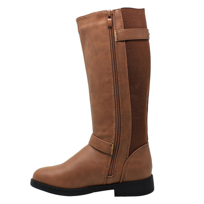 SOBEYO Girl's Knee-High Riding Boots Back Elastics Camel