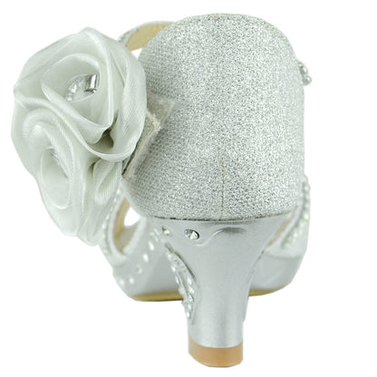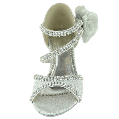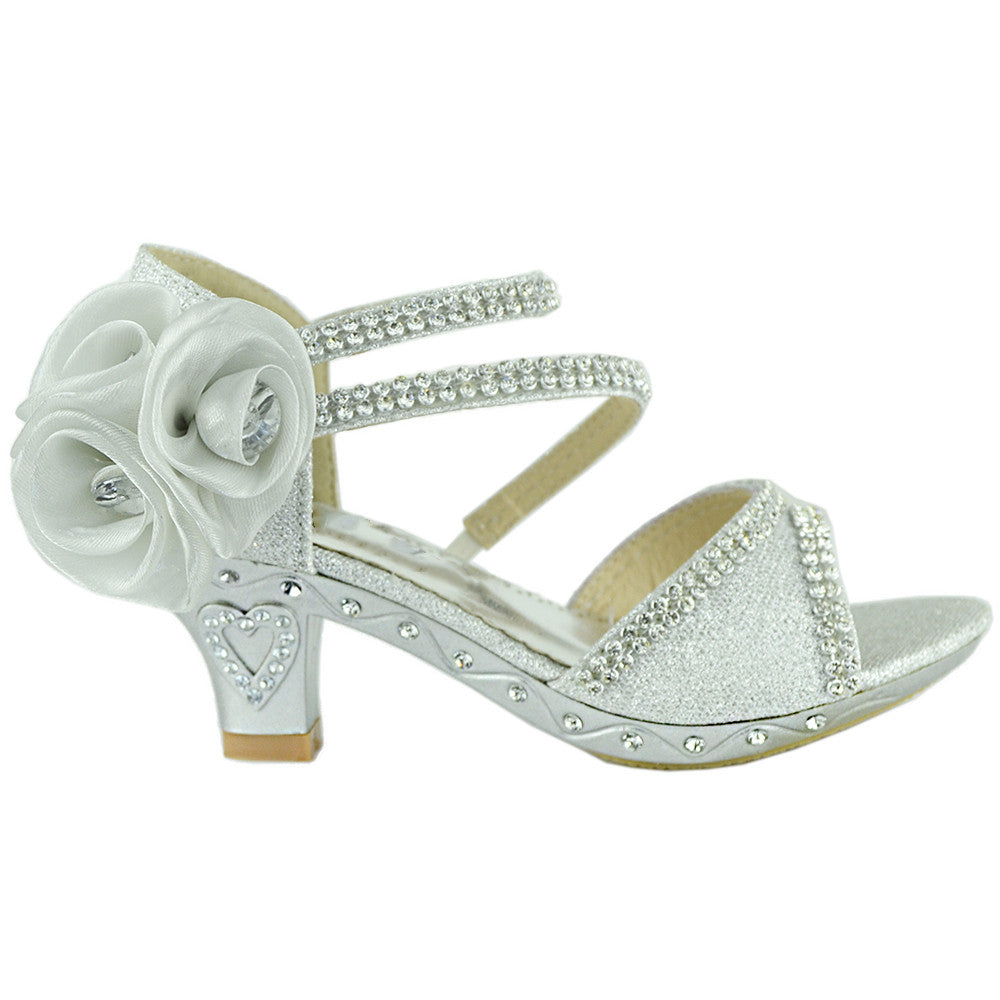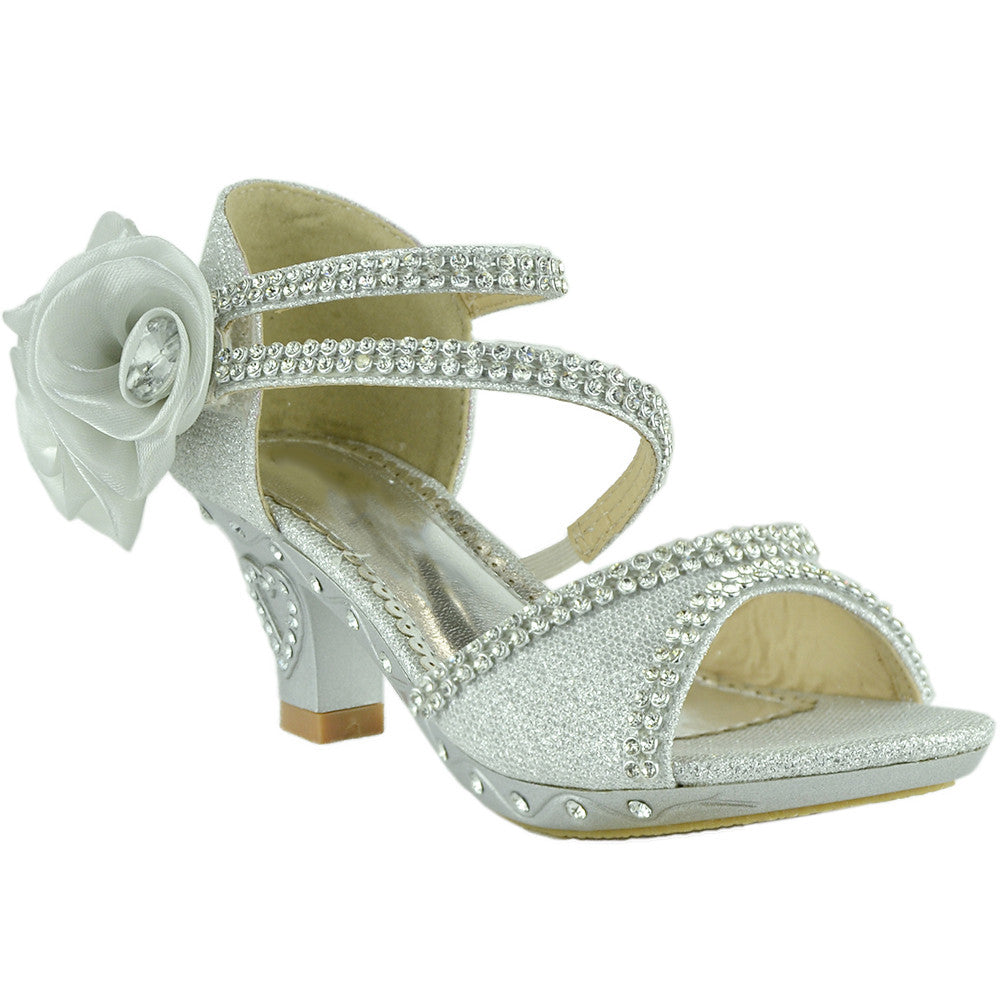 She'll be the belle of the ball with these adorable and glamorous heels. Features an asymmetrical rhinestone strap and heel embellishments.