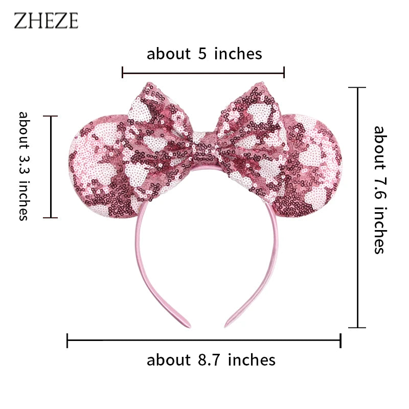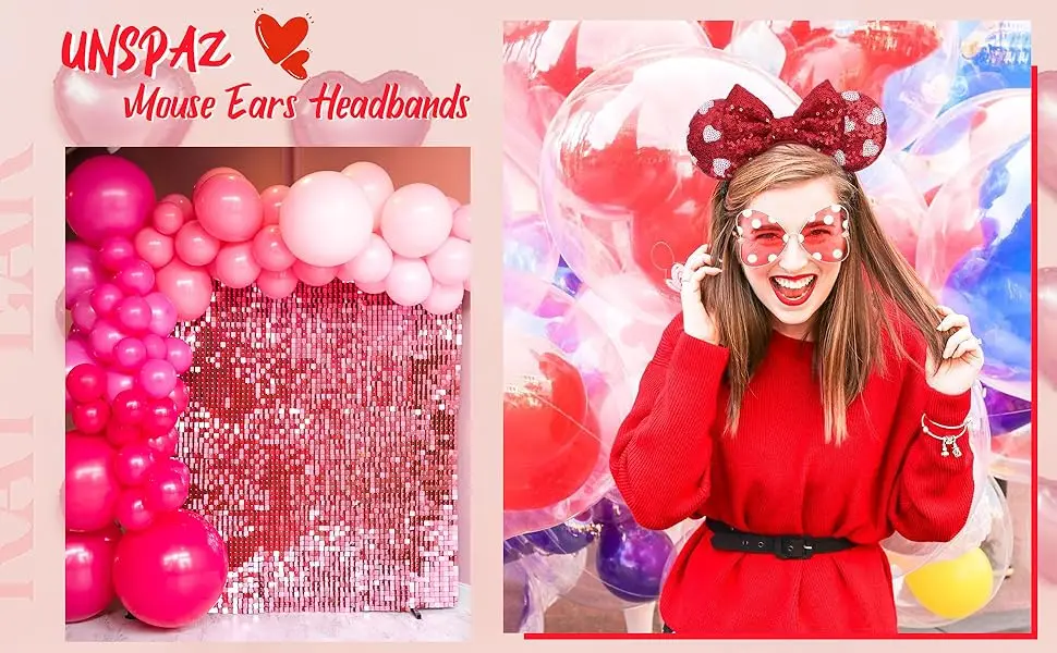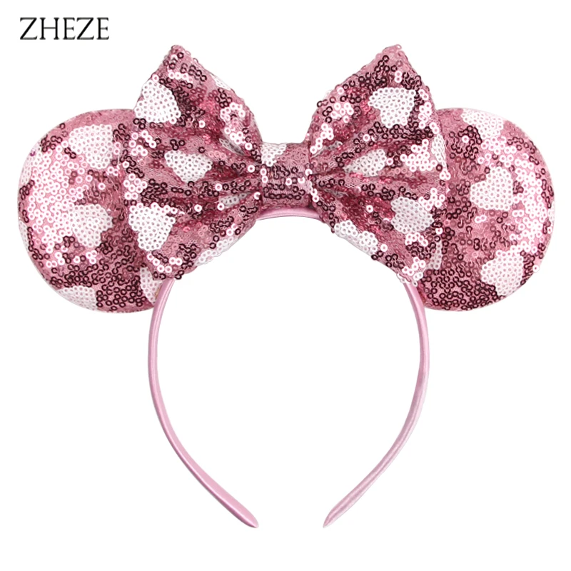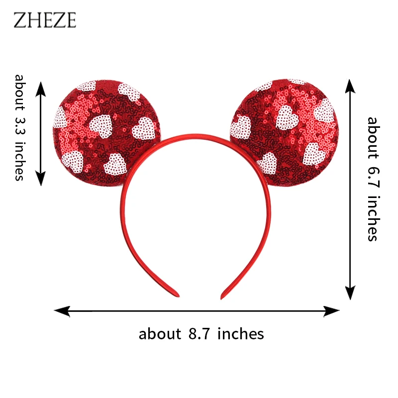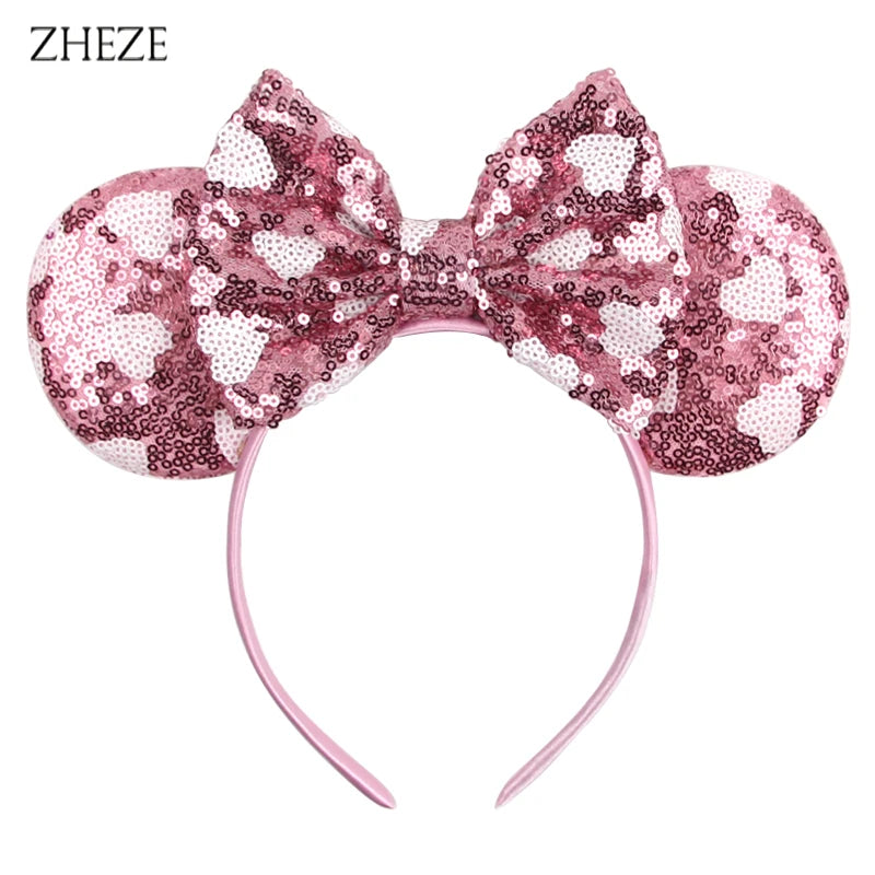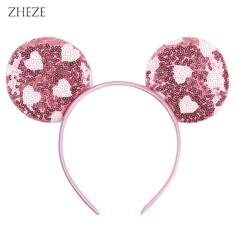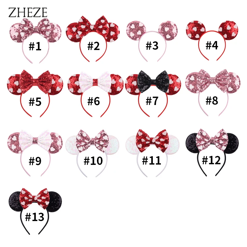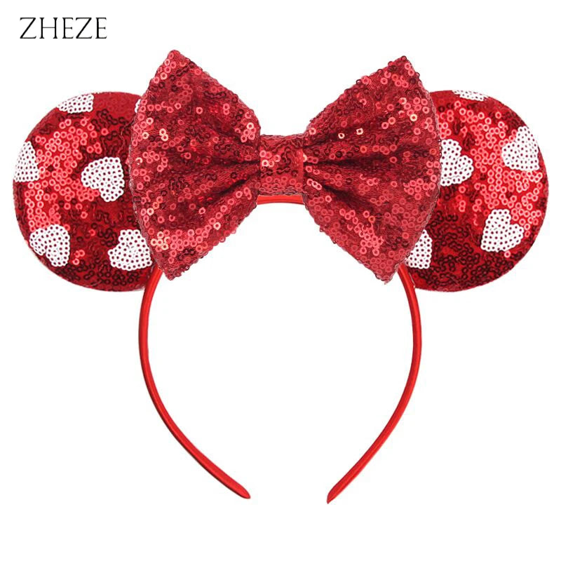 New Valentine's Day Mouse Ears Headband For Girls Women Sequins Love 5"Bow Hairbands Festival Party DIY Hair Accessories Femmes