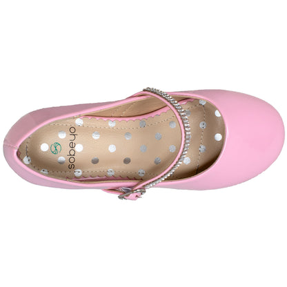 Classic meets modern in this fan favorite Mary Jane. A slim ankle strap covered with crystals, and a tapered block heel accented with rhinestones radiates glamorous city-chic vibes.