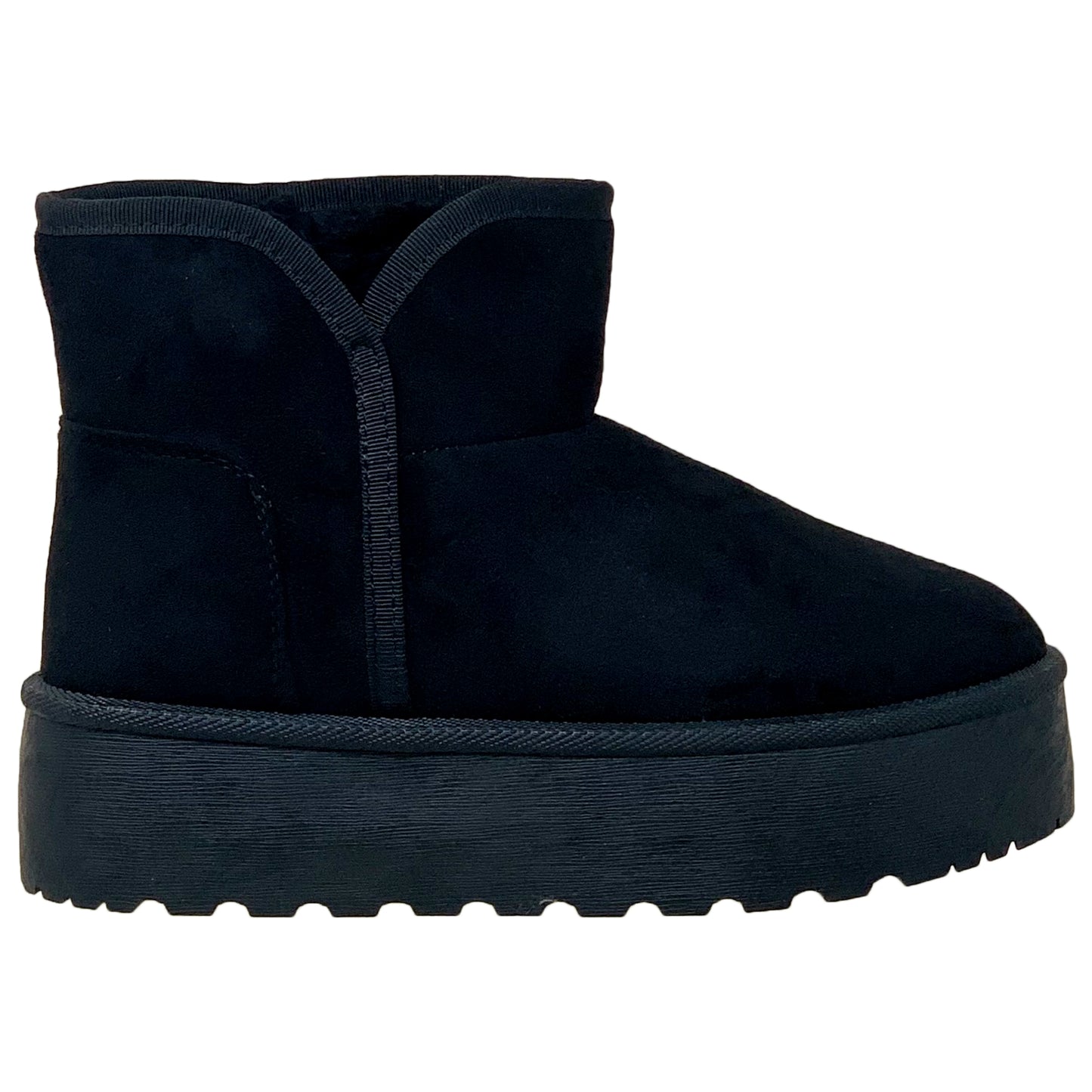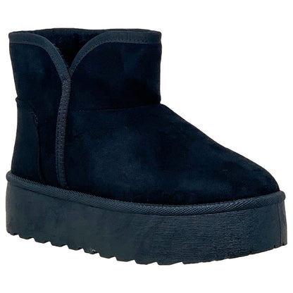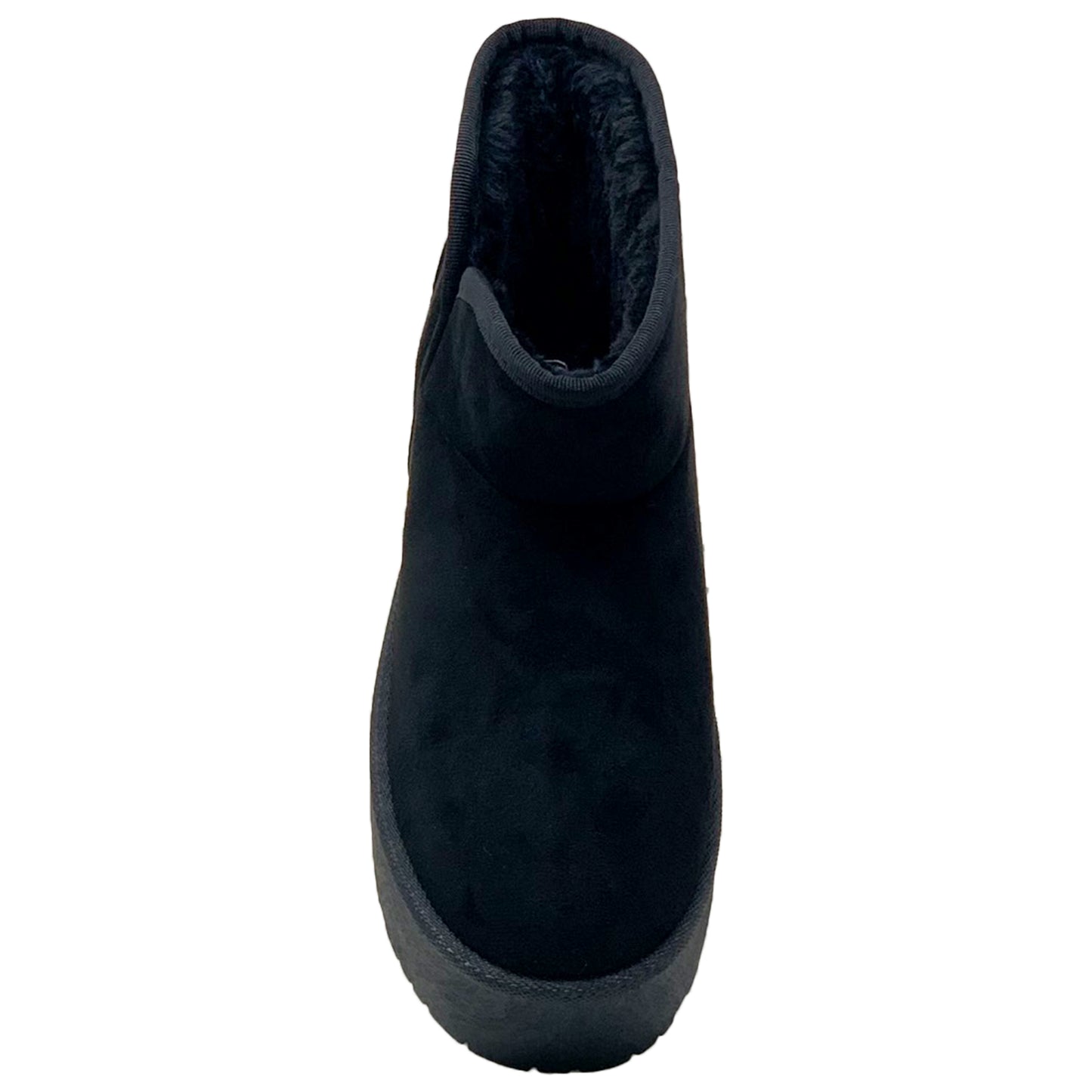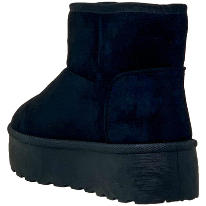 Women's Platform Booties Faux Suede Fur Lining Slip On Comfort Shoes Black Suede