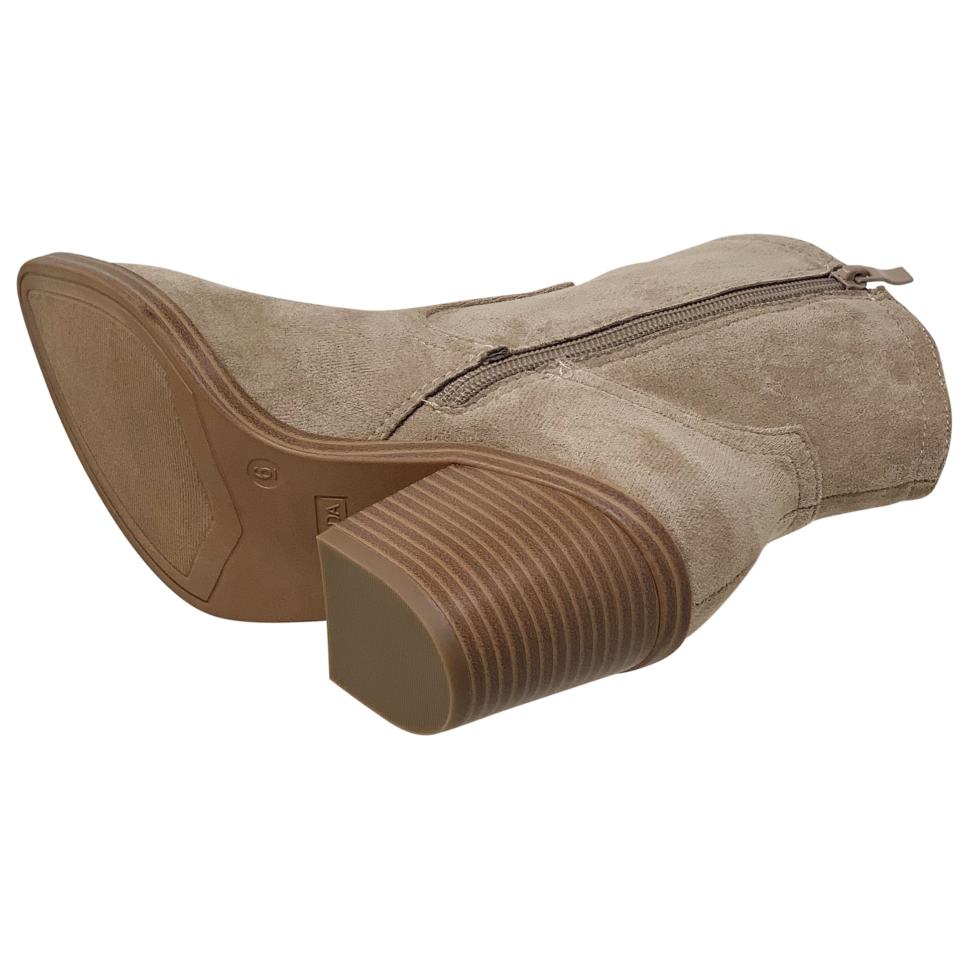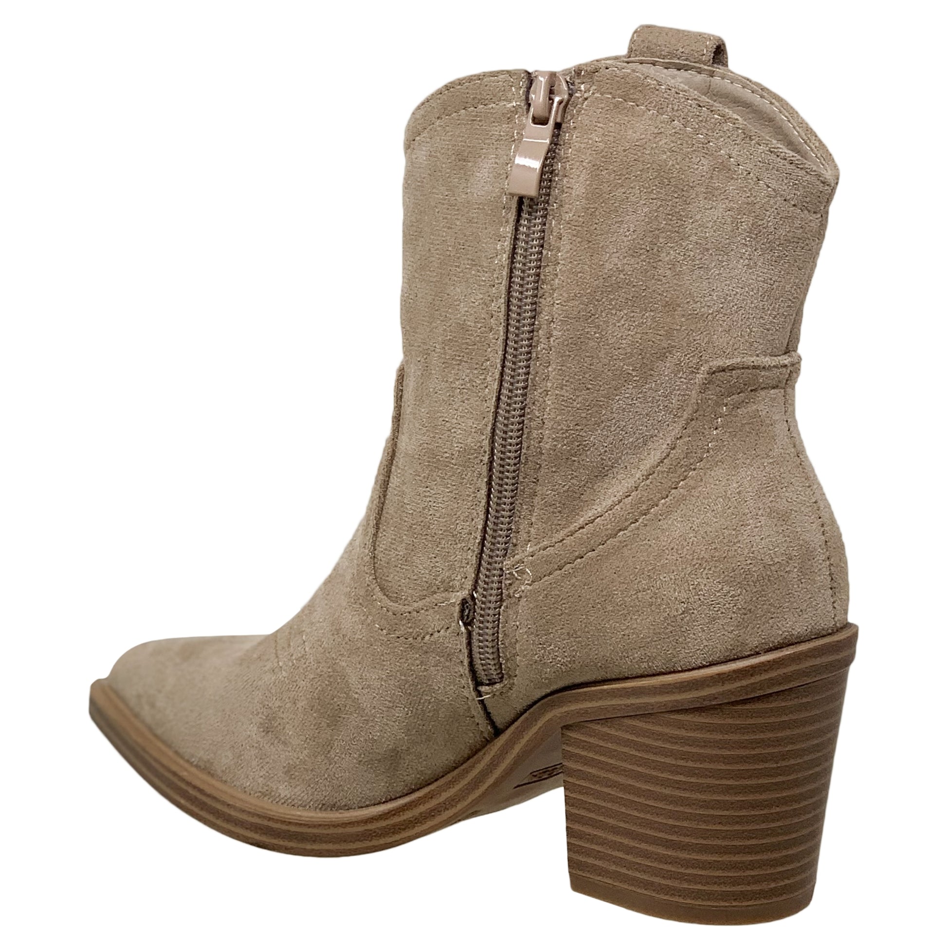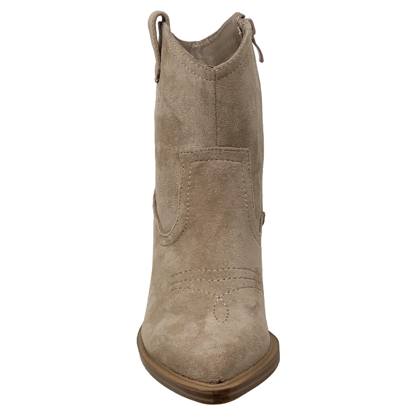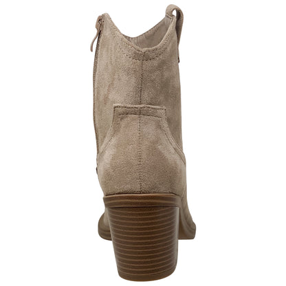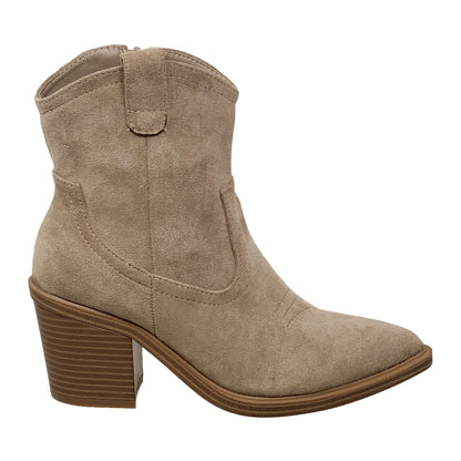 Western Ankle Booties Stitched Cowboy Toe Side Zipper Closure Taupe