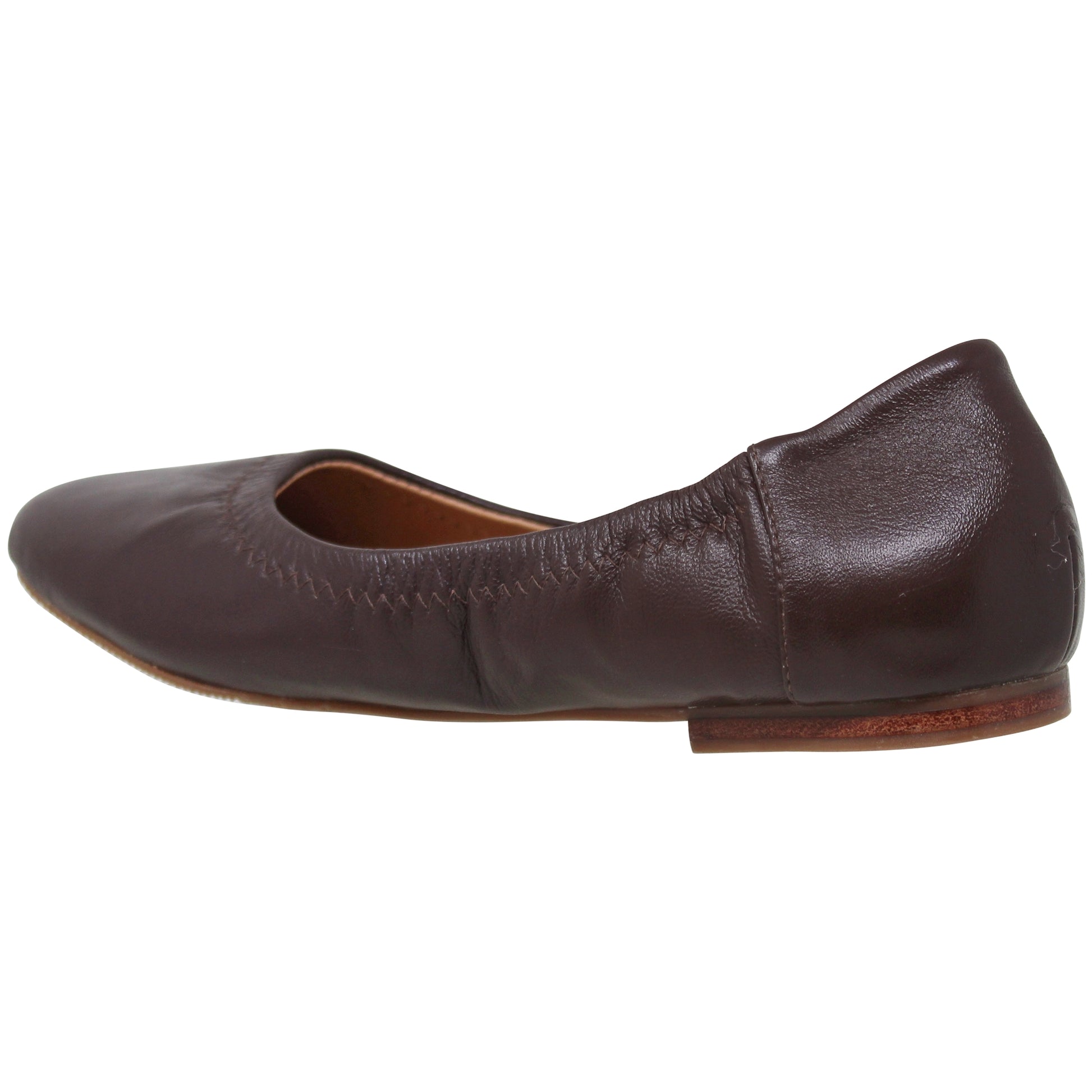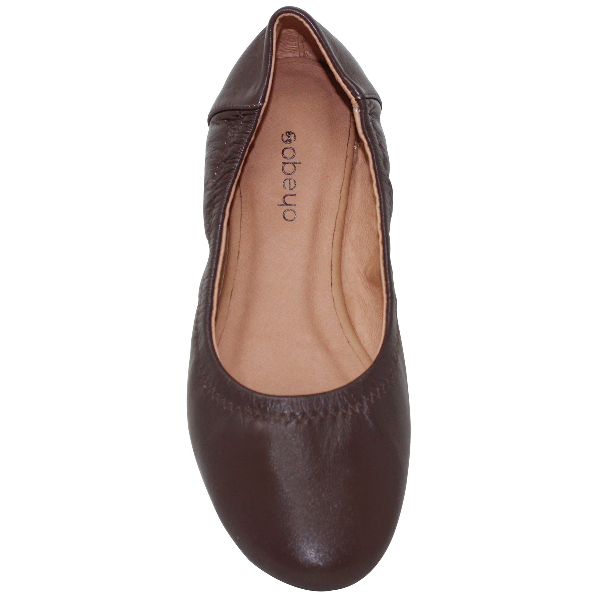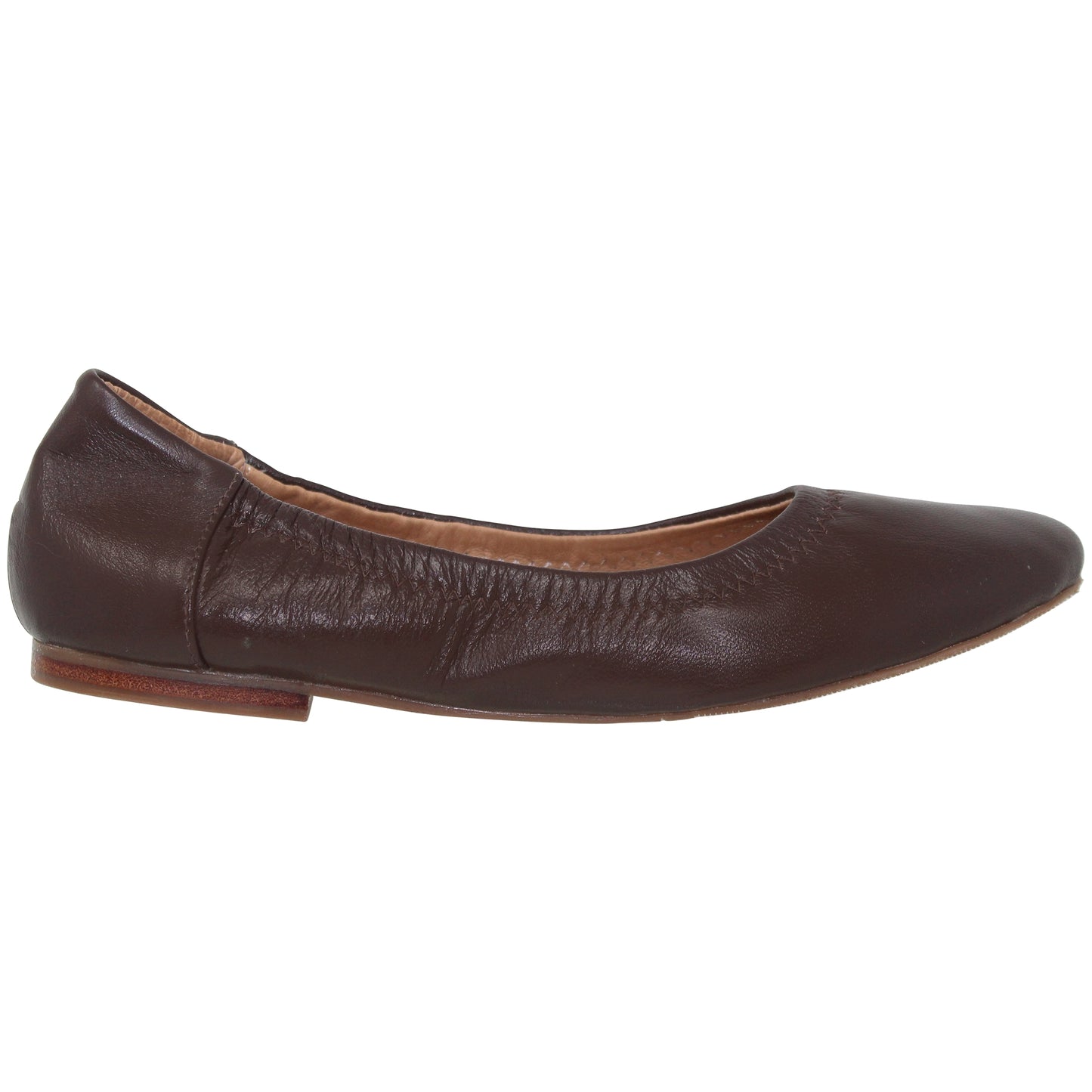 Brown Ballet Flats Round Toe Genuine Leather Elastic Side