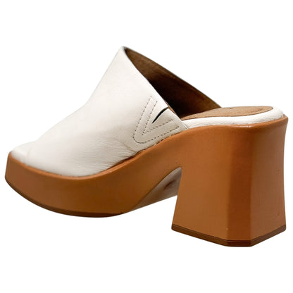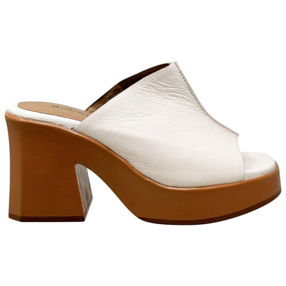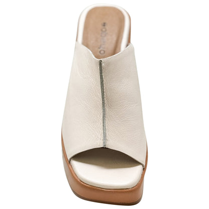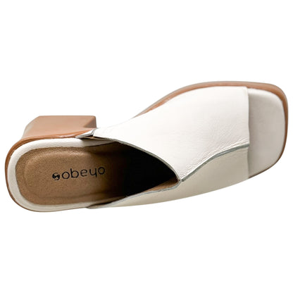 SOBEYO Leather One-Band Slip-On Platform Sandals Bell-Block Heels