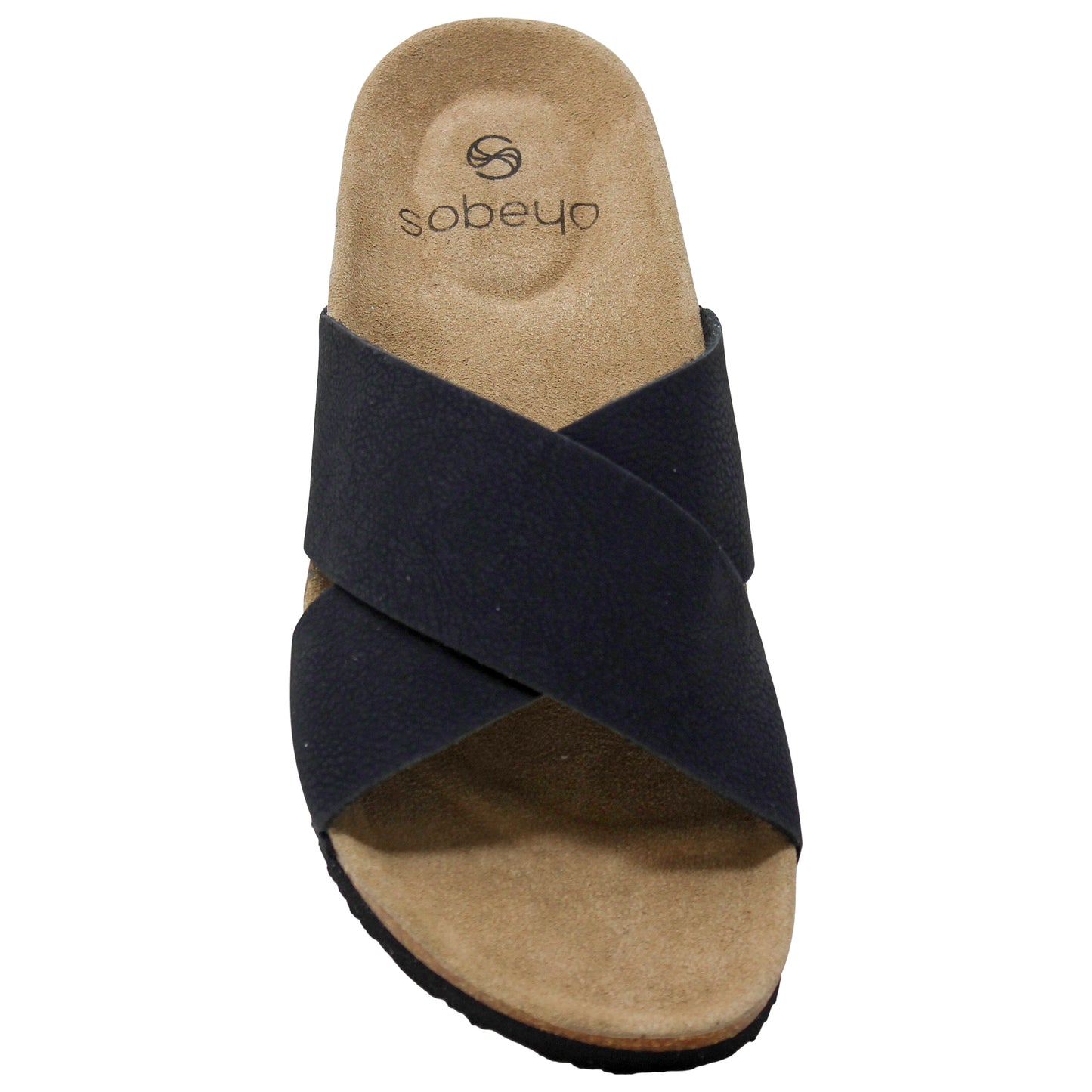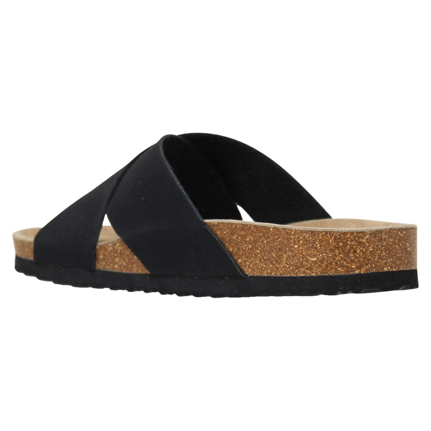 SOBEYO Classic Cork Sandals Criss-Cross Strap Slip On Black