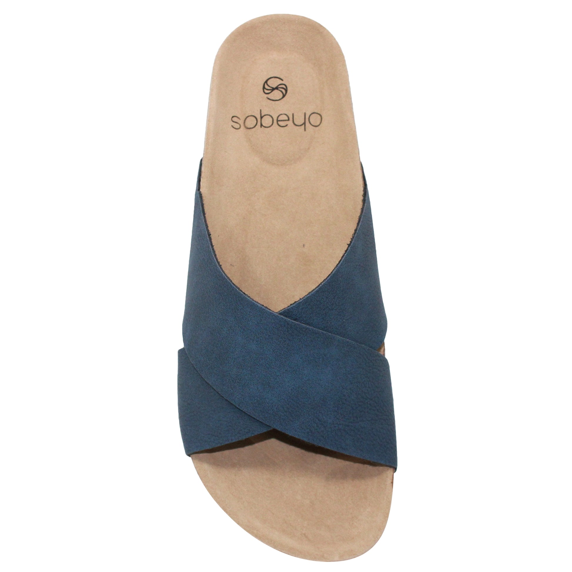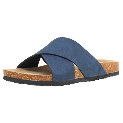 SOBEYO Classic Cork Sandals Criss-Cross Strap Slip On Navy Blue