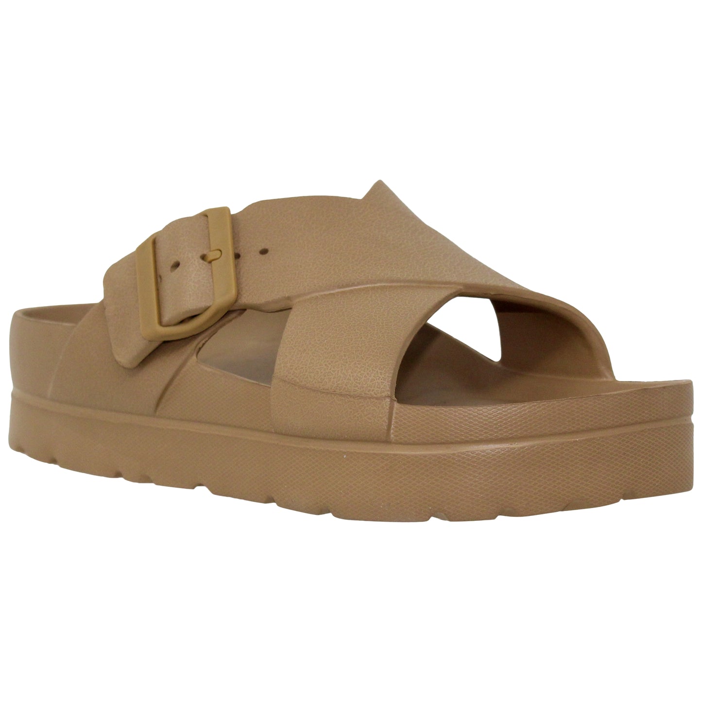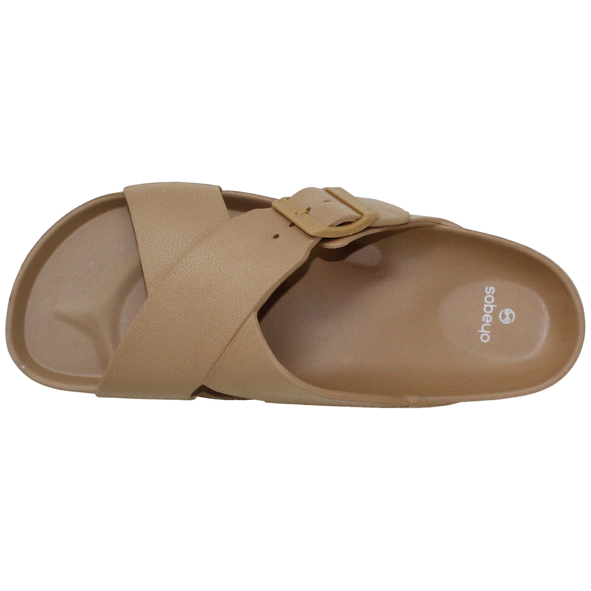 SOBEYO Light-Weight Platform Sandals Criss-Cross Adjustable Buckles Tan