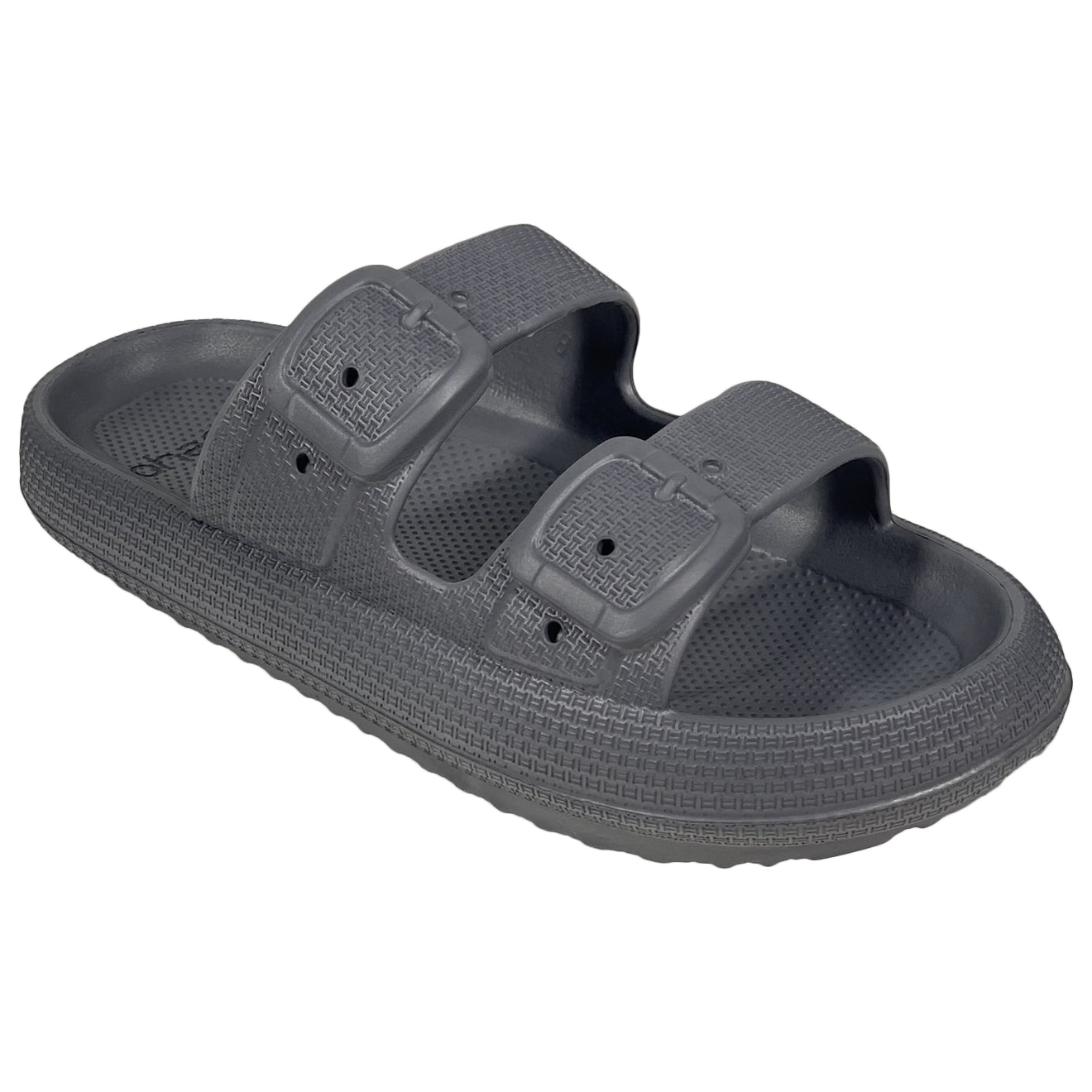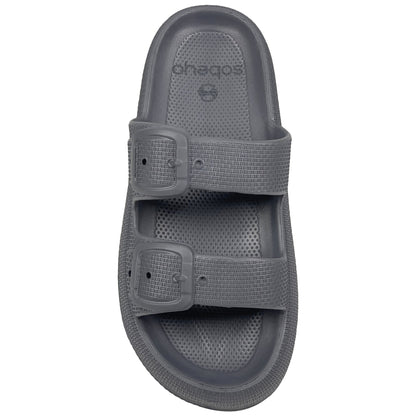 Women's Double Straps Buckles Sandals Flatform Slip On Cute Light-Weight EVA Flip Flops