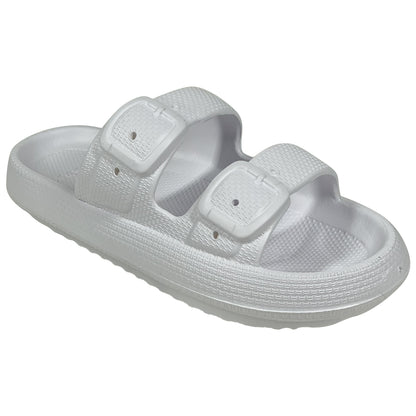 Women's Double Straps Buckles Sandals Flatform Slip On Cute Light-Weight EVA Flip Flops