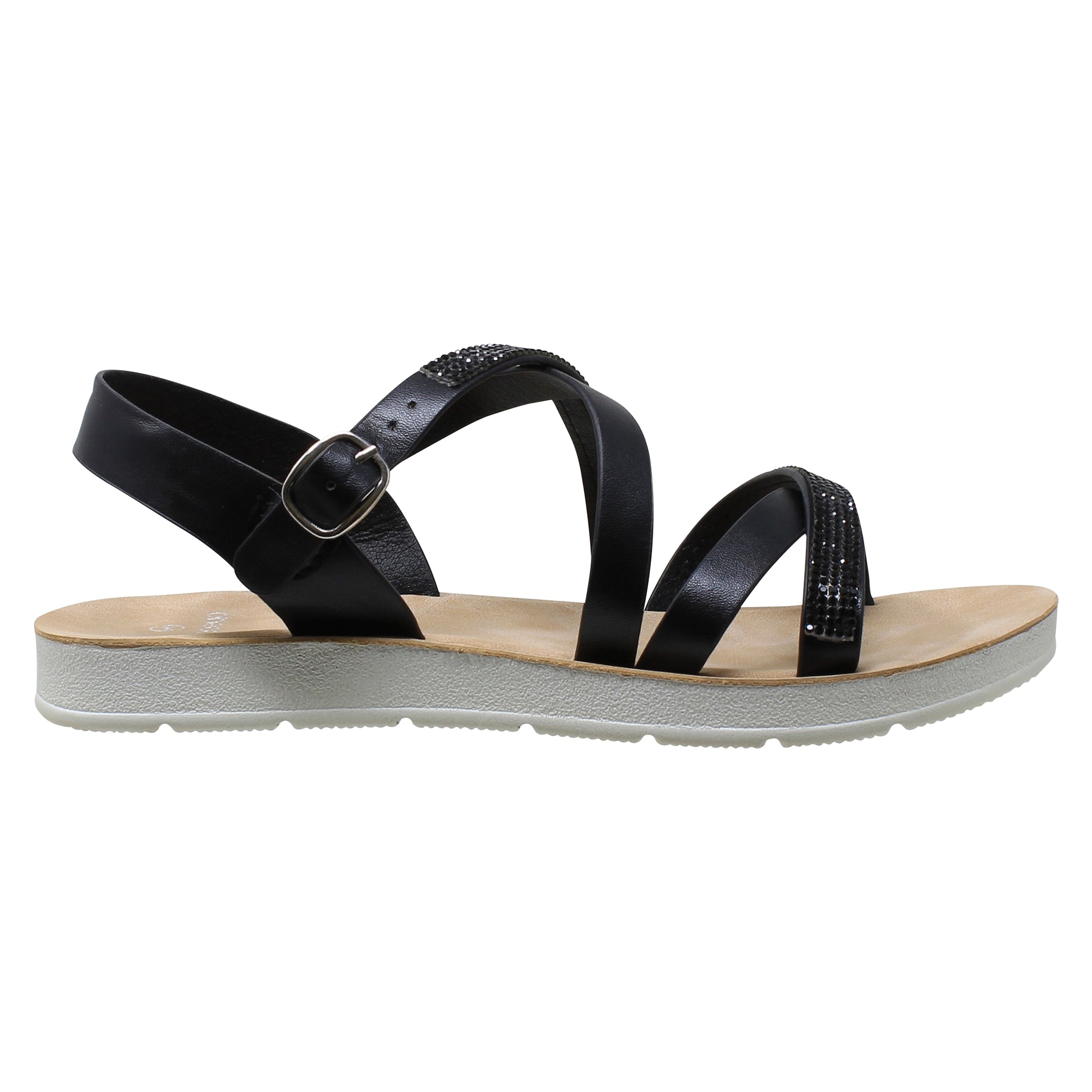 SOBEYO Women's Flat Sandals Stone Accent Double Cross Straps