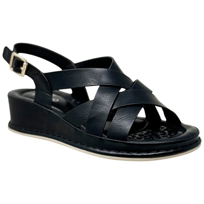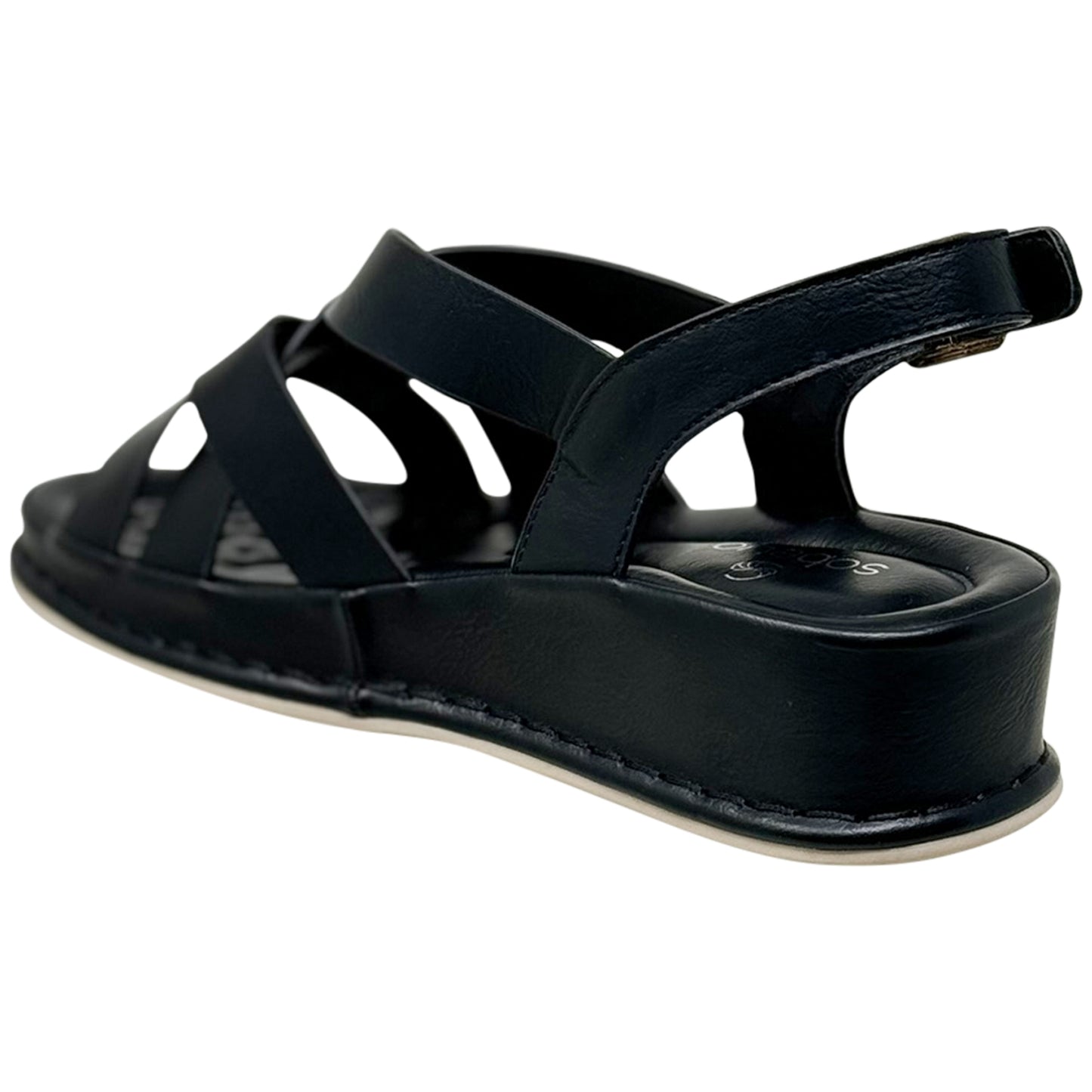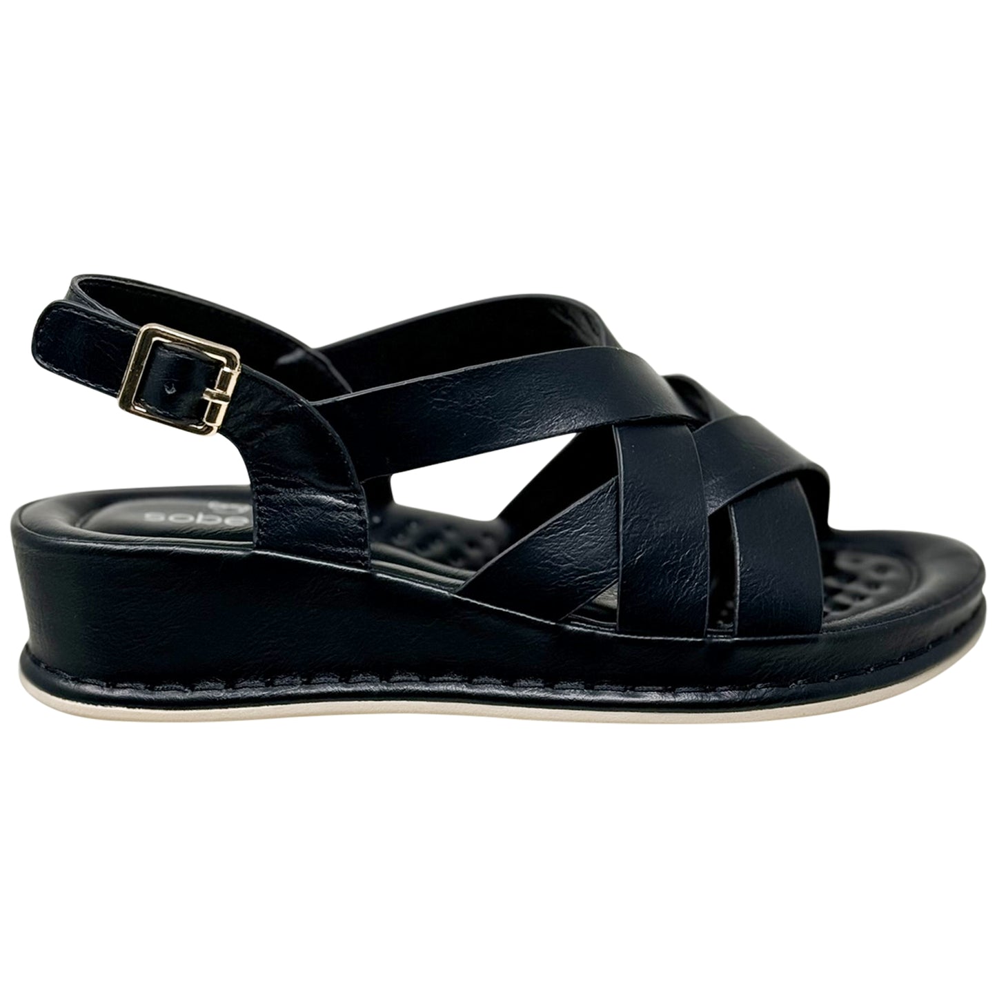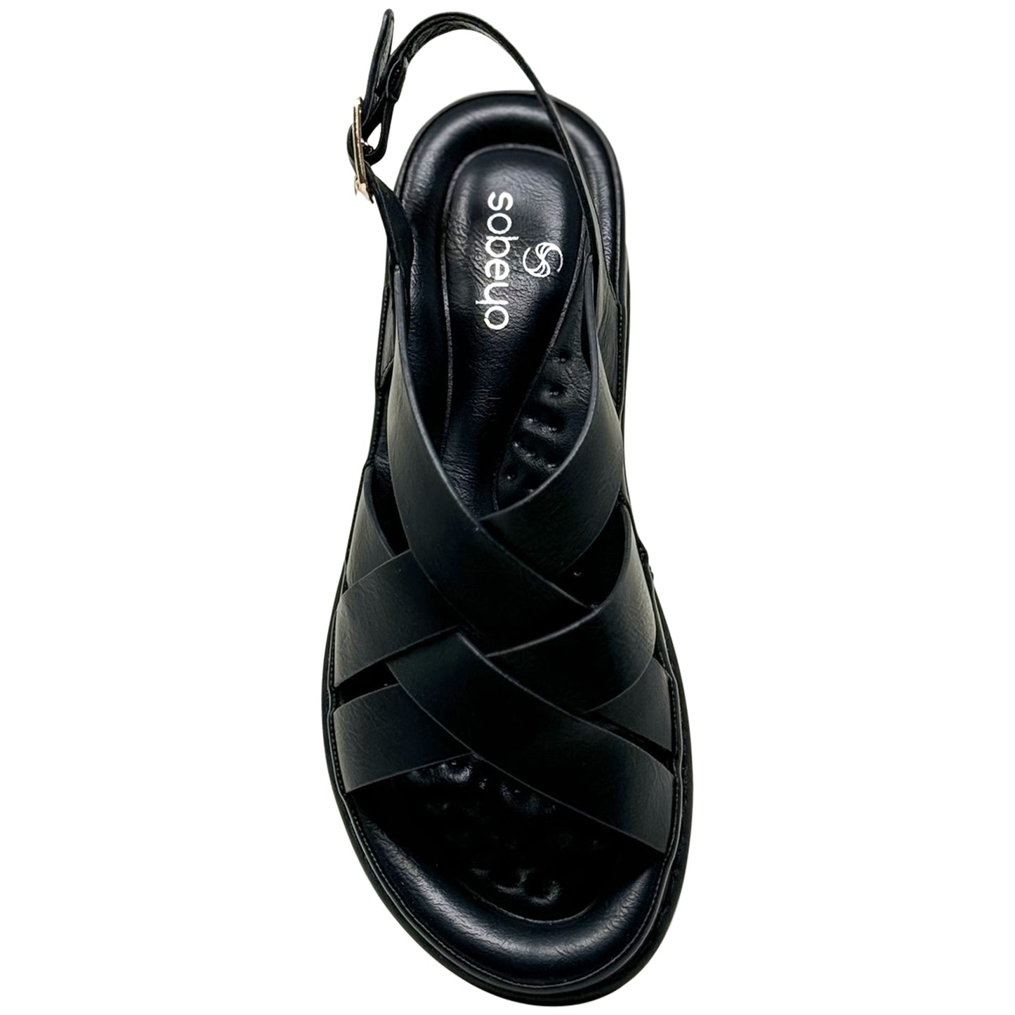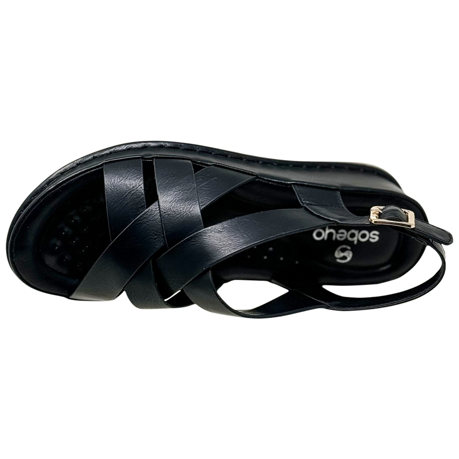 SOBEYO Strappy Wedge Sandals Footbed Cushion Ankle Gold Buckled Strap Black