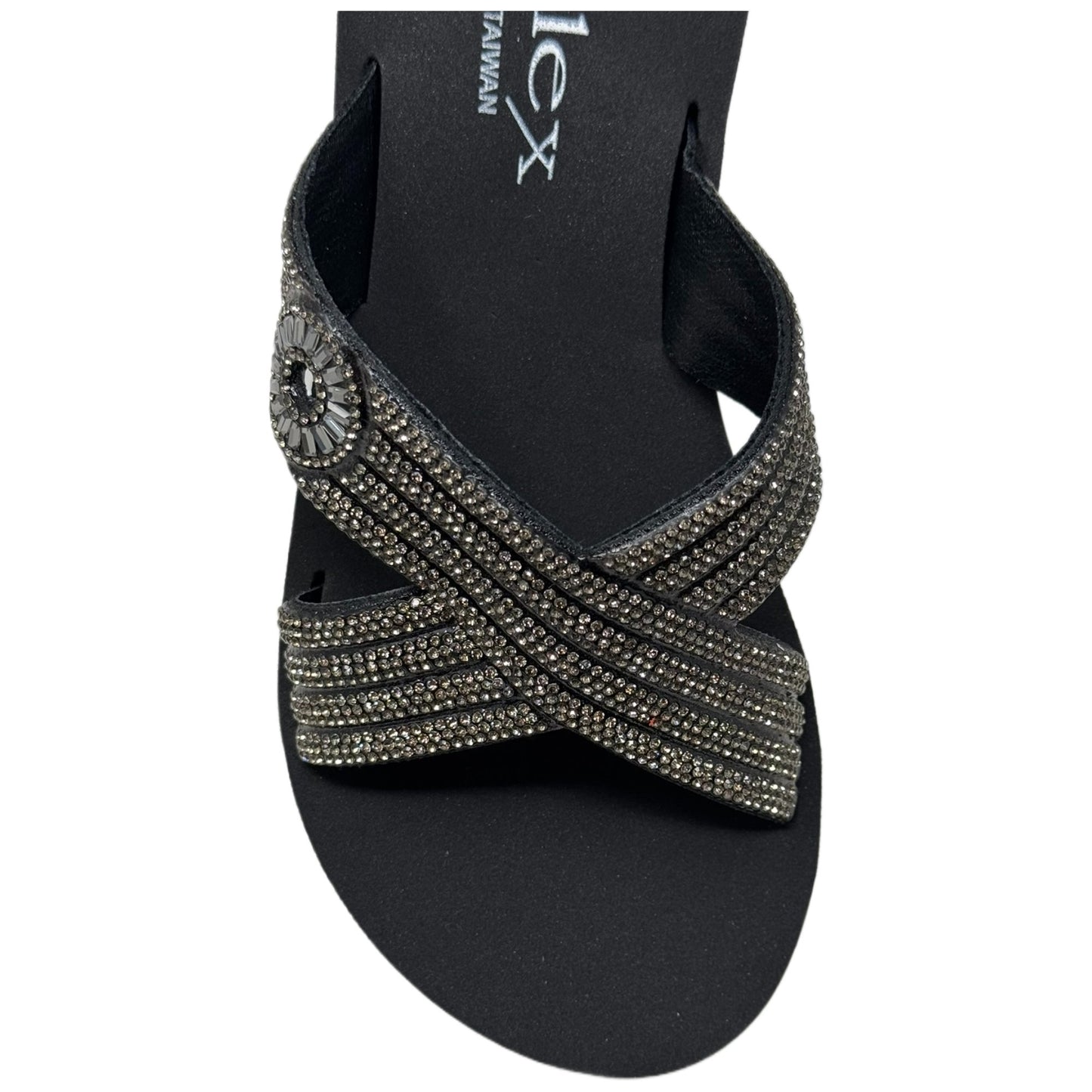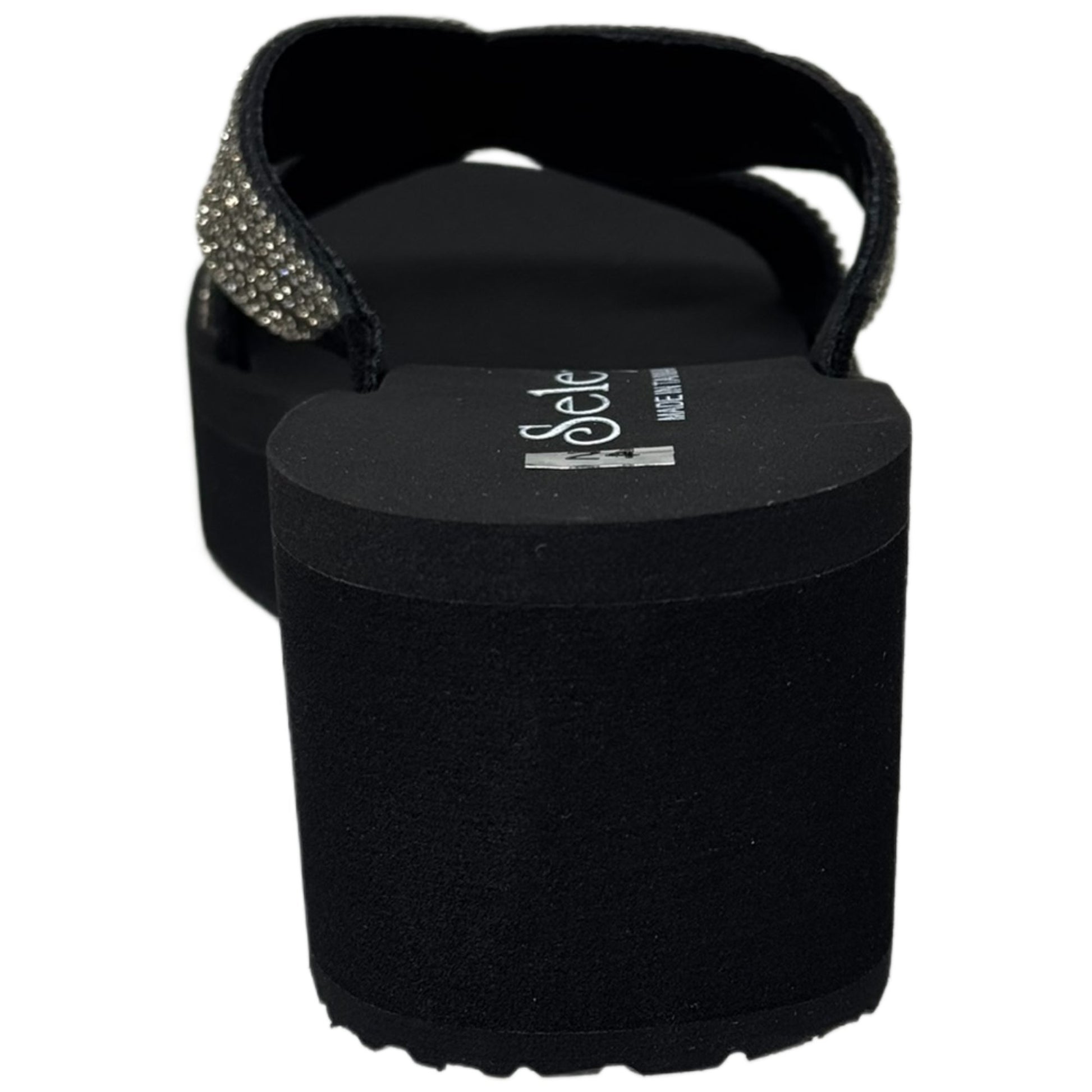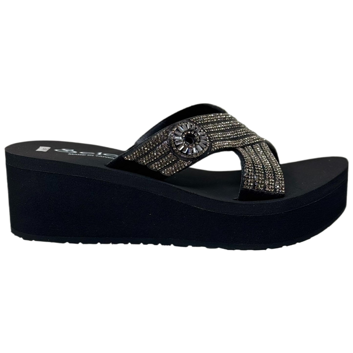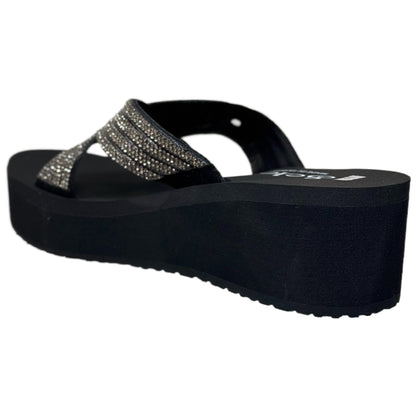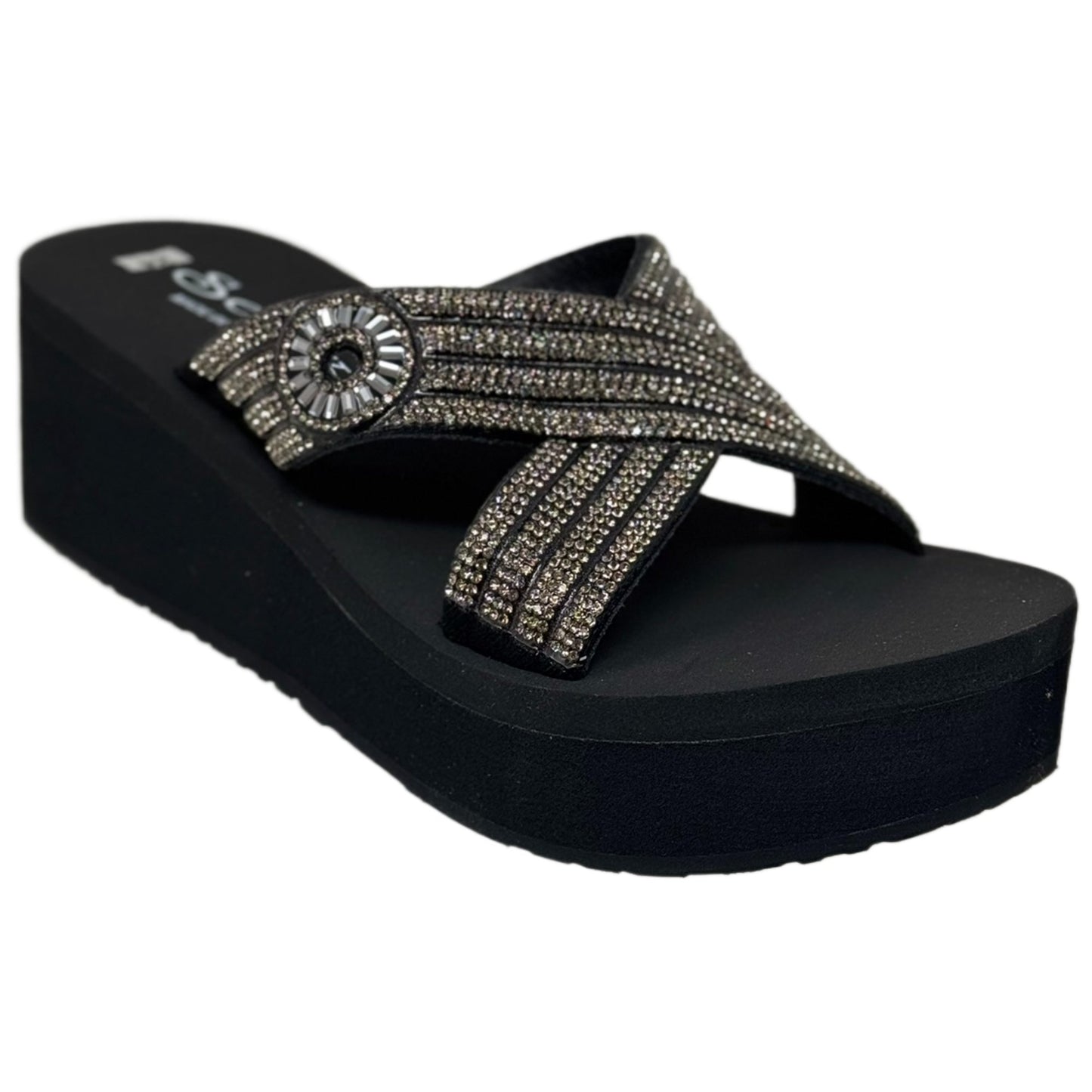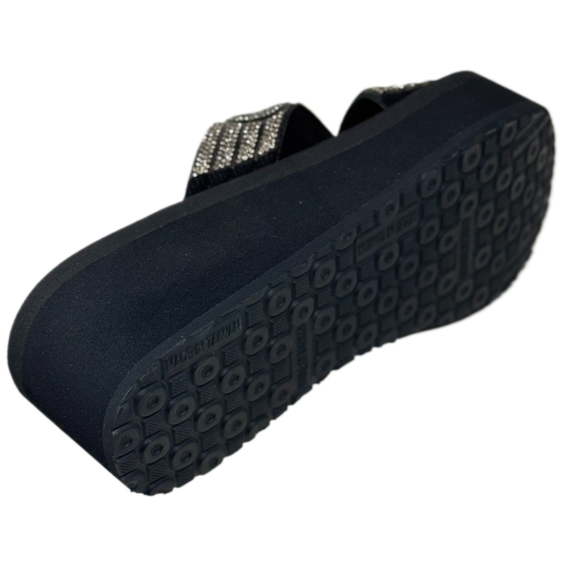Womens Crisscross Strap Slide Rhinestone Embellished Platform Wedge Sandals Black